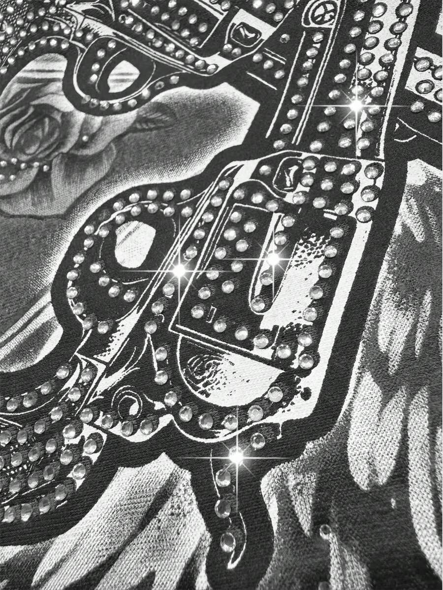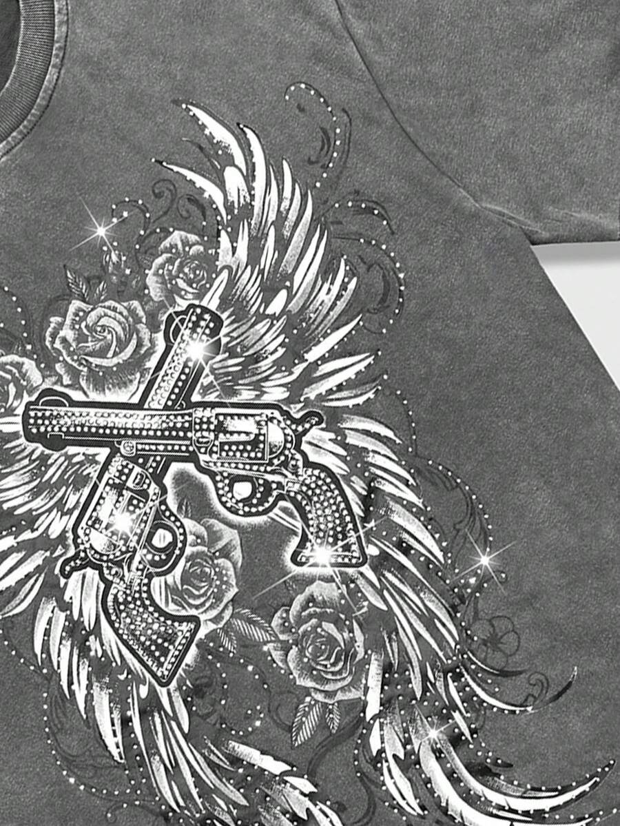Street Life قميص T رجالي كاجوال مغسول مرصع بالراين كم قصير ، صيفي