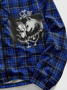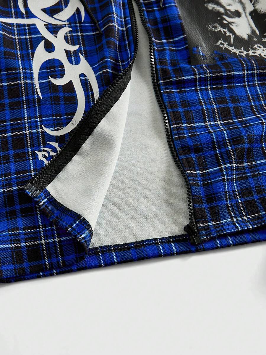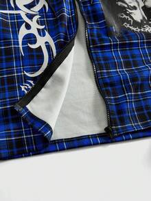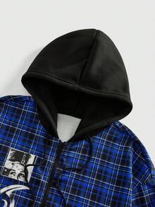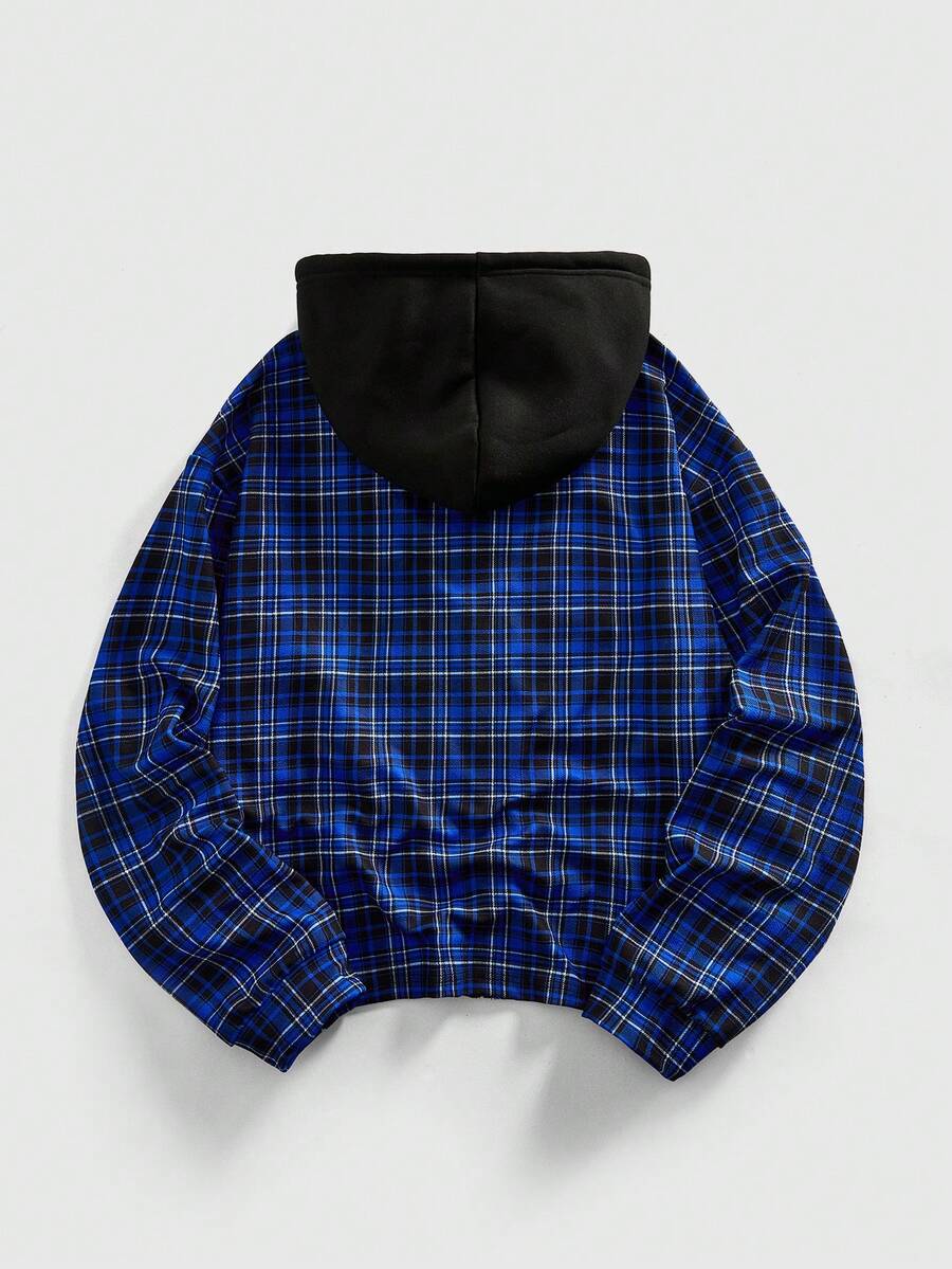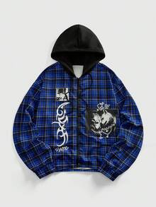 Street Life هودي رجالي مطبوع بنقشة مربعات ملونة وأشكال