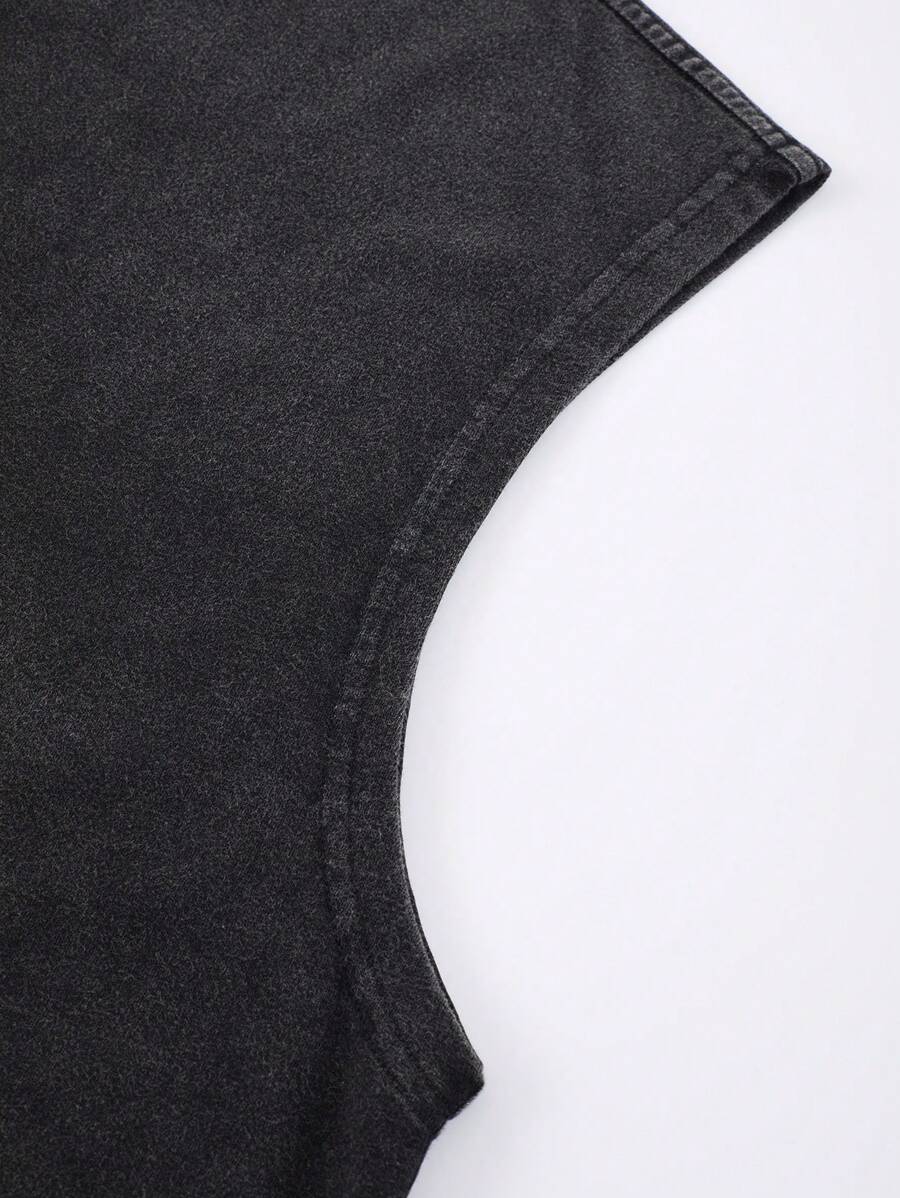 Street Life ملابس علوية أكمام بلا أسود مطبوع بصليب مغسول للرجال، هالوين