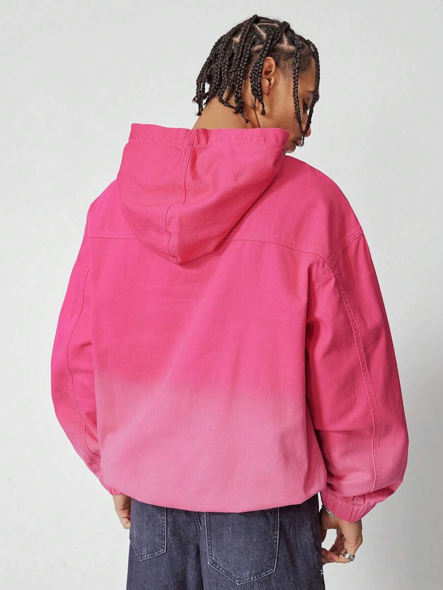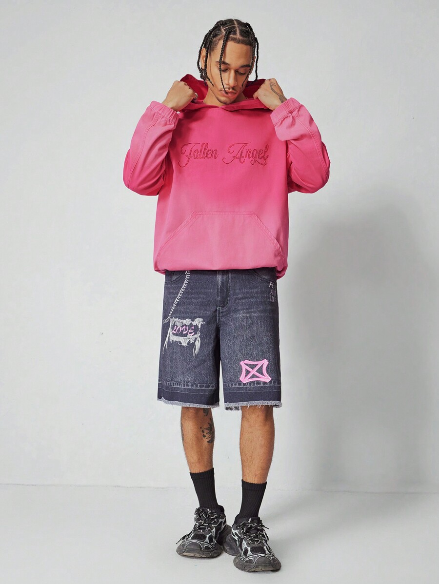 Street Life سترة من الجينز بطبعة حرفية بها تشويه، بأكمام طويلة مزودة بقبعة، بأسلوب شارع