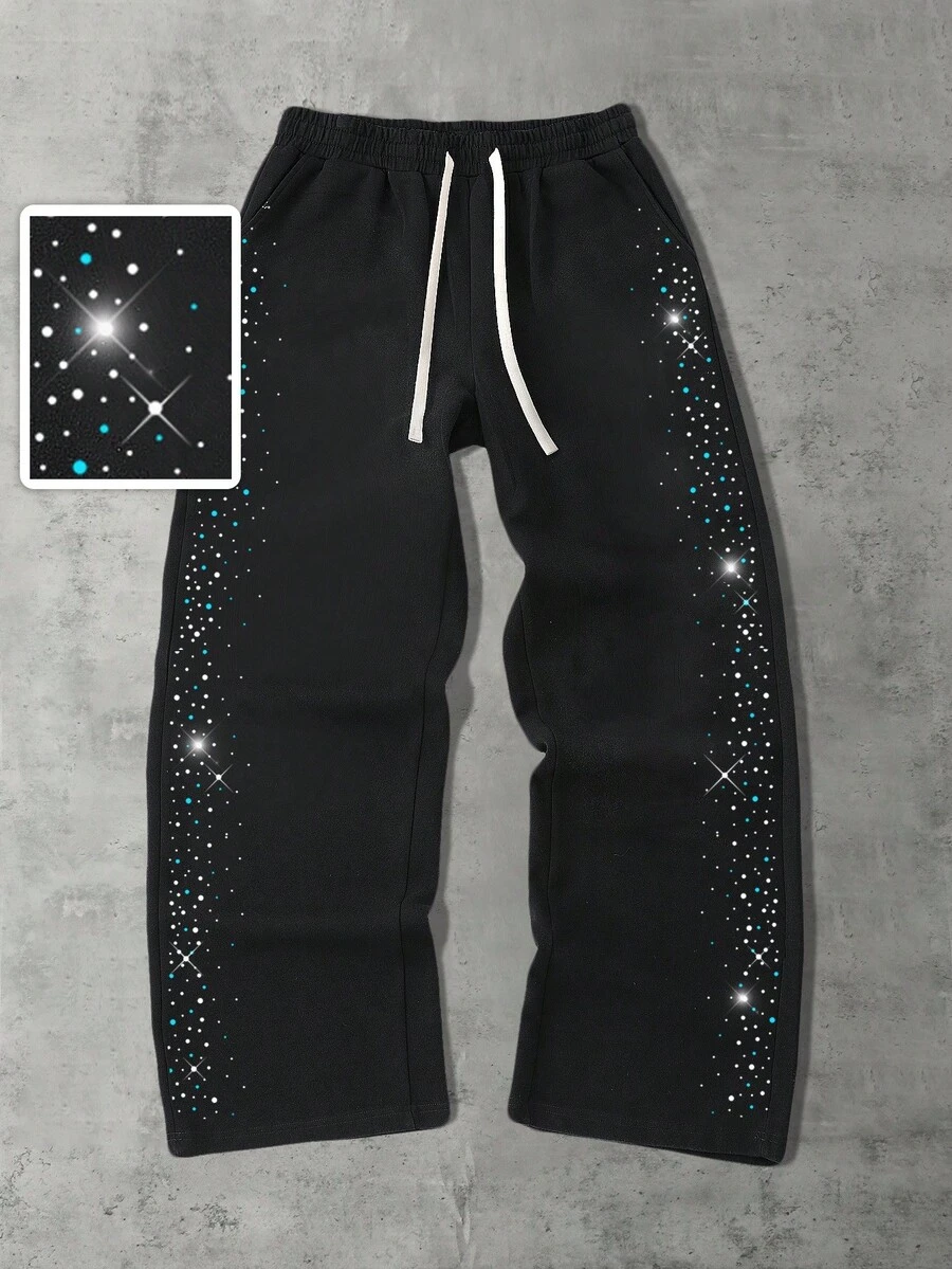 Street Life بنطلون رياضي فضفاض لرجال مرصع بالماس عصري