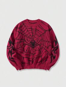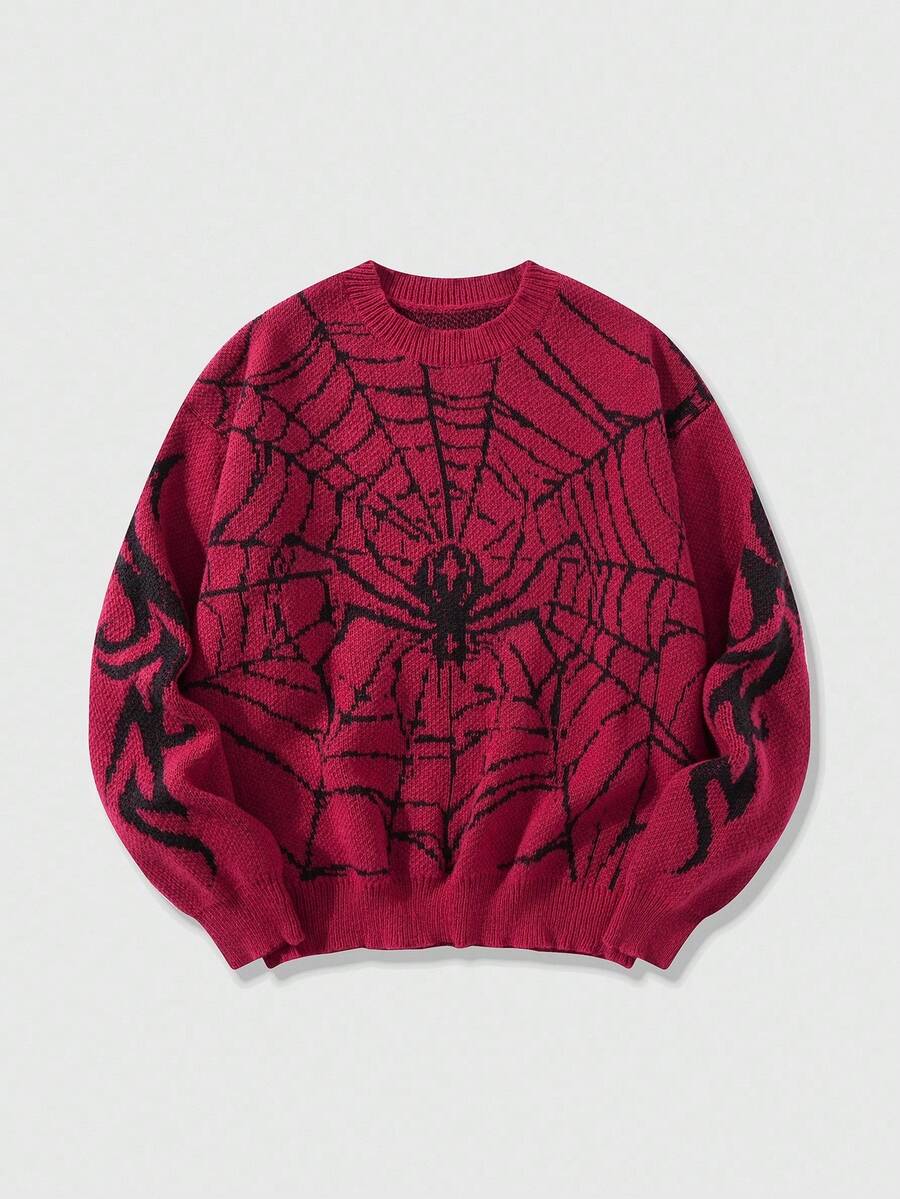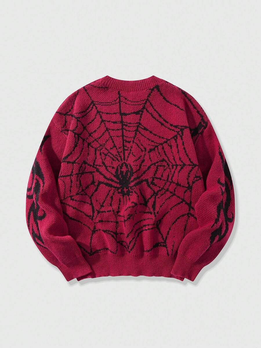 Street Life كنزة صوفية رجالية ذات نسيج جاكار بتصميم شبكة العنكبوت، مناسبة للخريف والشتاء
