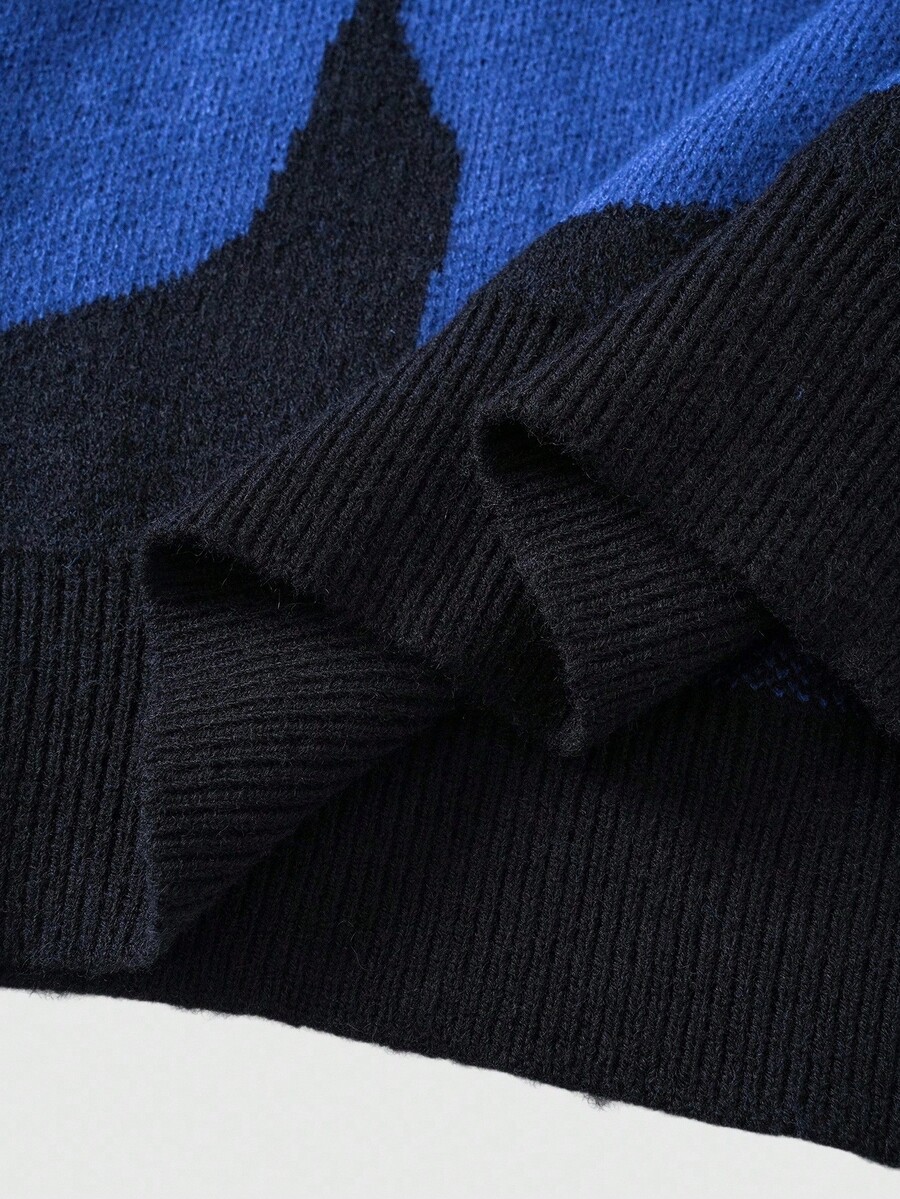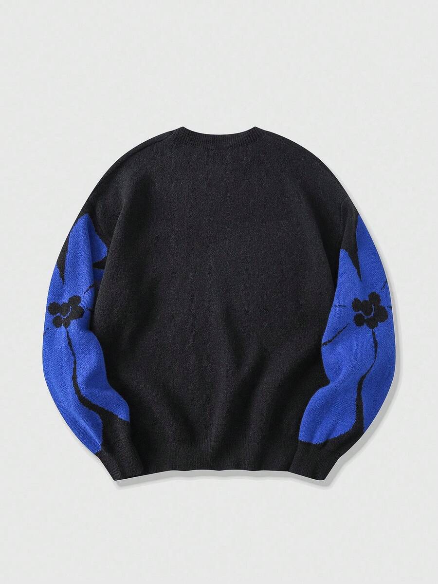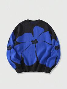 Street Life كنزة صوفية كاجوال فضفاضة مصنوعة من الجاكار المزخرف بالزهور، خريف/شتاء