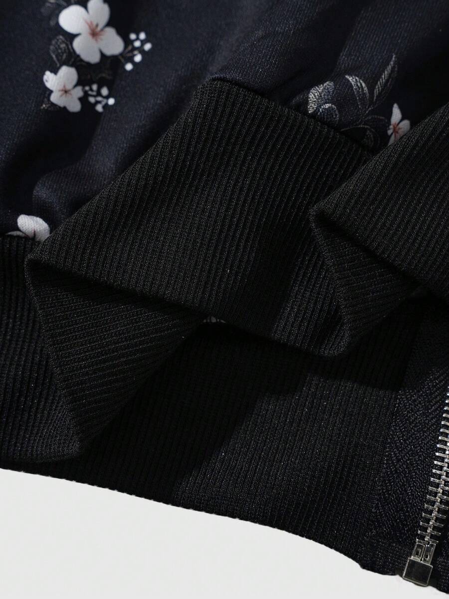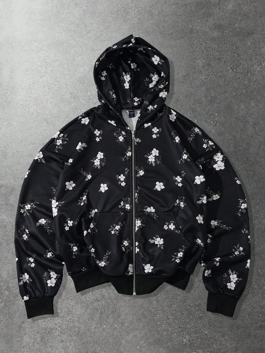 Street Life بلوزة رياضية كاجوال مطبوعة بالزهور مع سحاب للرجال