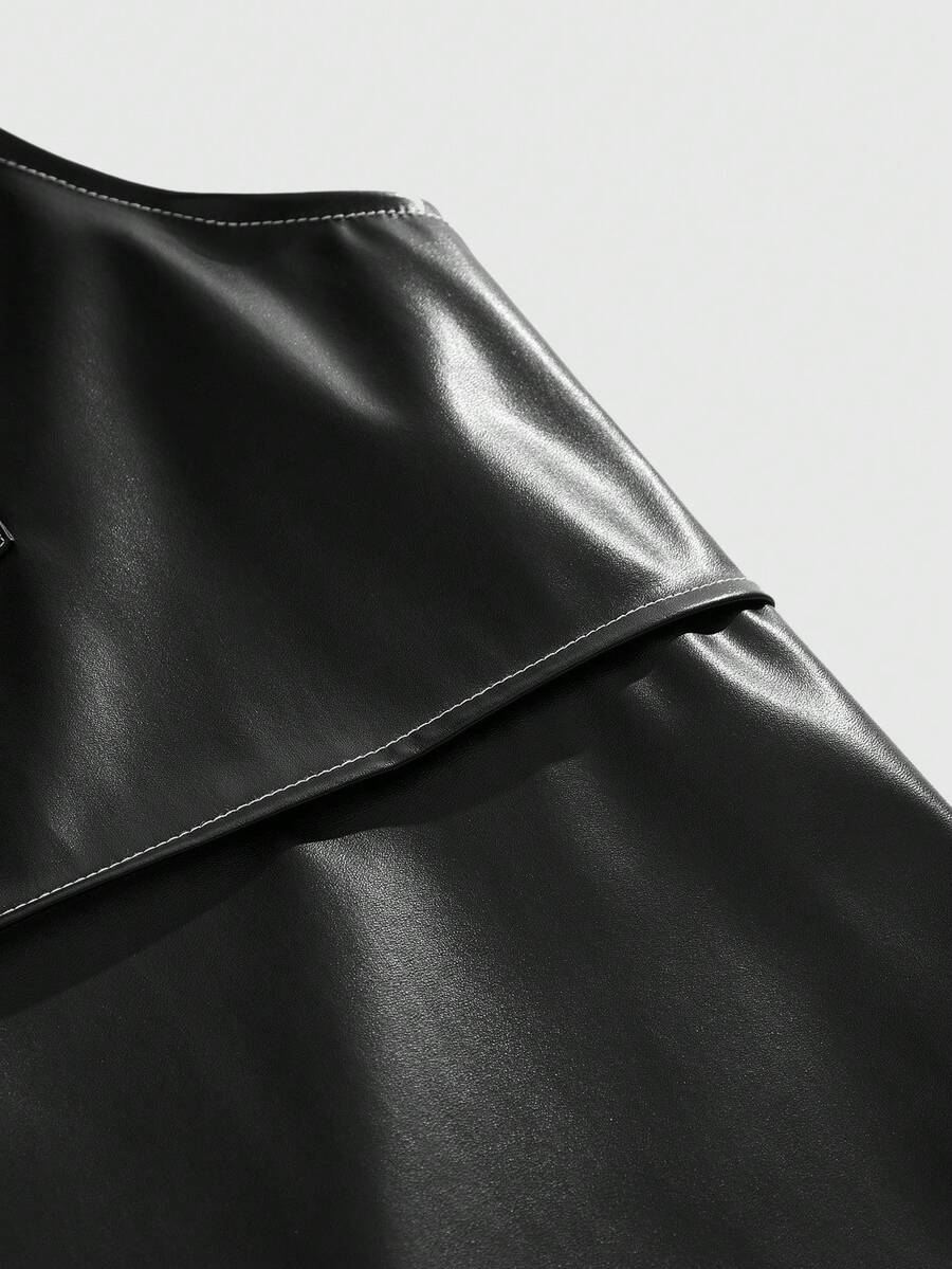 Street Life سترة جلدية أمامية مزودة بجيب بدون كم للرجال