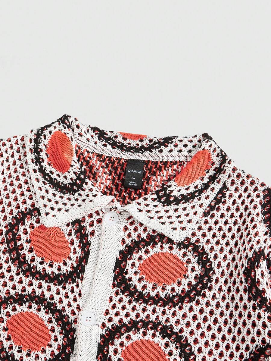 Street Life بلوزة كنز بأكمام قصيرة ذات نقشات هندسية مثقبة لرجال، مناسبة للارتداء اليومي في الربيع والصيف