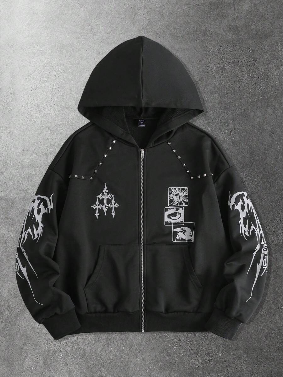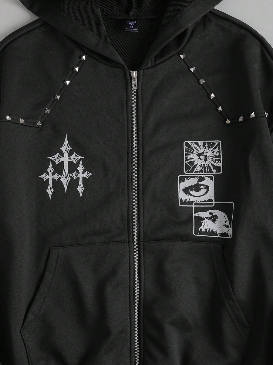 Street Life هودي رجالي مطبوع بطراز جوثيك مزود بسحاب