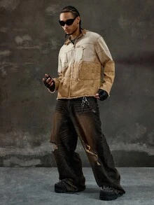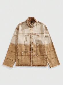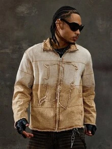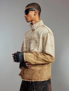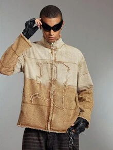 Street Life جاكيت جينز رجالية مع طرف مبهم ومنحدر وياقة سحاب