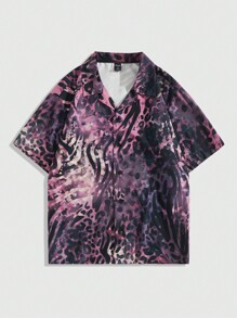 Street Life قميص عادي وفضفاض للرجال بطبعة شريط الزيبرا للعطلات