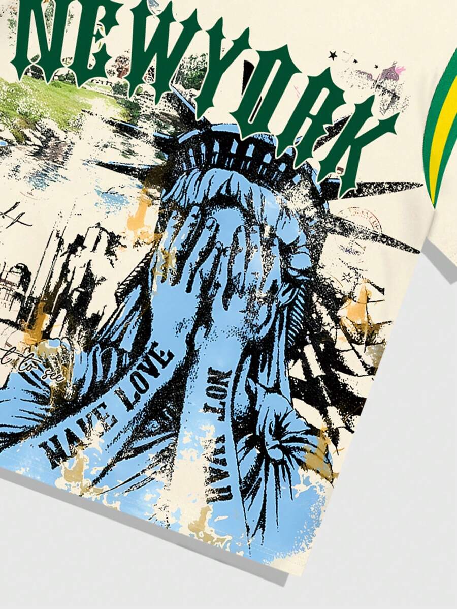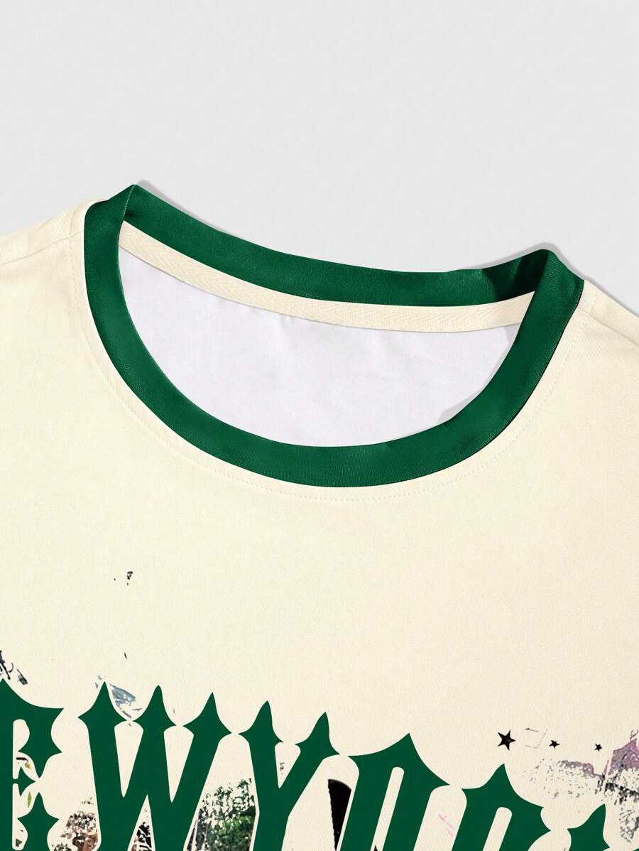 Street Life تي شيرت رجالي كاجول ياقة مستديرة بتصميم راقي، مناسب للارتداء اليومي في الربيع والصيف