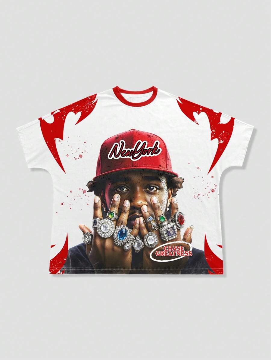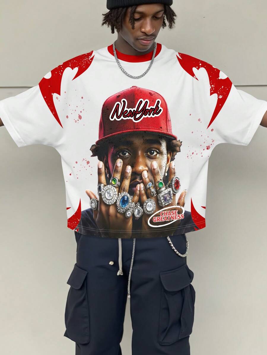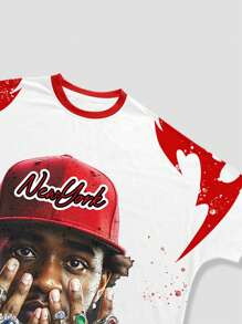 Street Life تي شيرت كاجوال ذو رقبة دائرية بأكمام قصيرة وطبعات شخصيات لعيد الحب للرجال