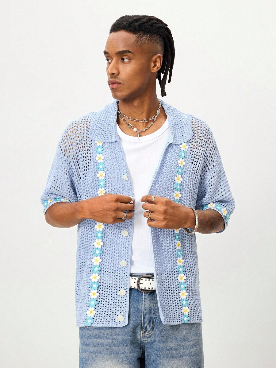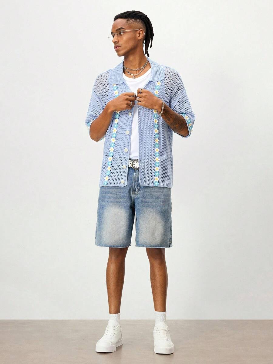 Street Life ملابس علوية رجالية كاجوال للأعياد مطرزة بتطريز مجسم، مصنوعة من قماش مجدول مفرغ