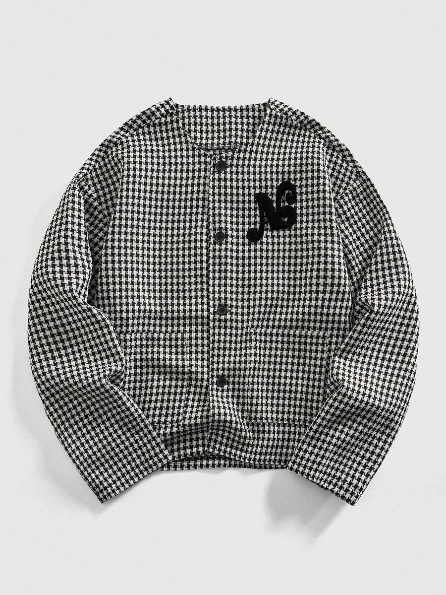 Street Life معطف طويل الأكمام أحادي الصدر بدون طوق بنمط الهندسي الرجالي، خريف/شتاء
