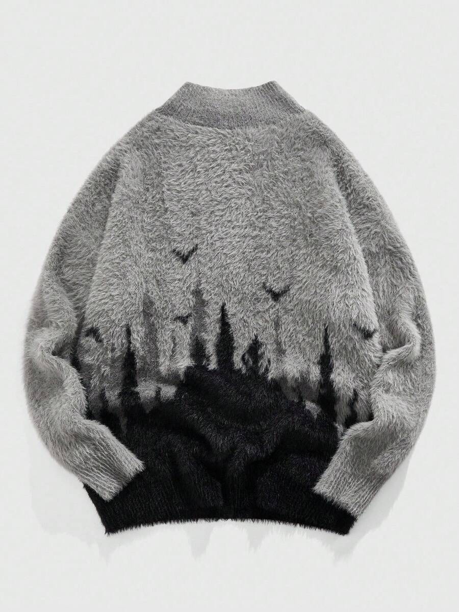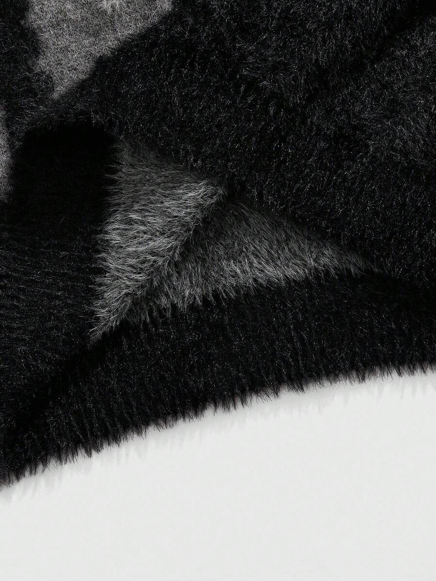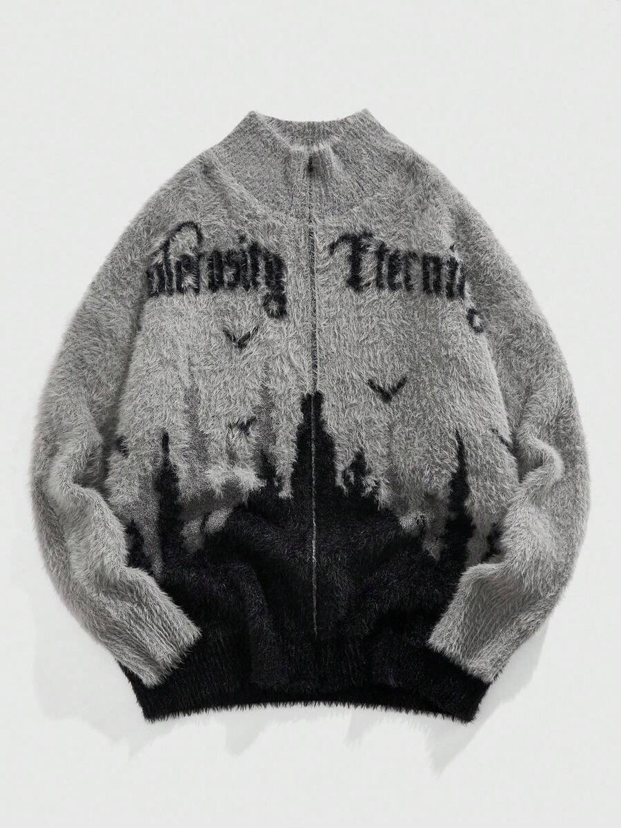 Street Life كارديجان طويل الأكمام بياقة عالية مصنوع من الجاكار، خريف/شتاء