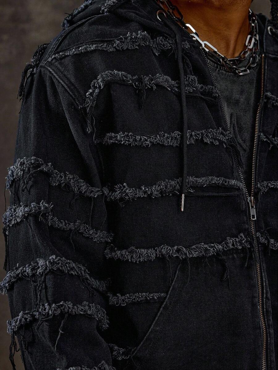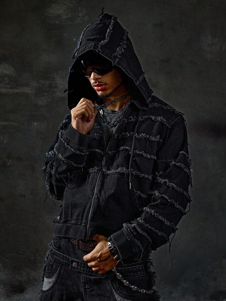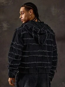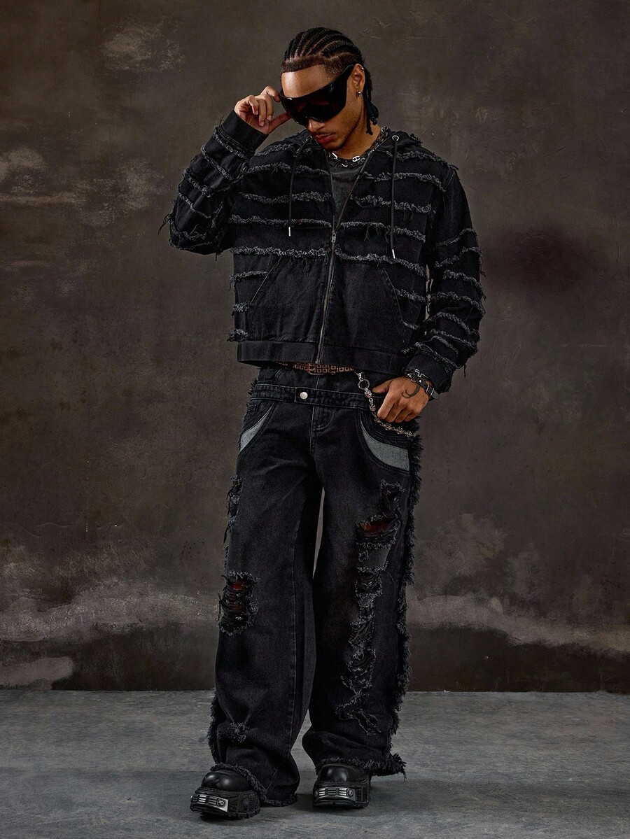 Street Life جاكيت جينز مزود بسحاب وقبعة مهترئة للرجال