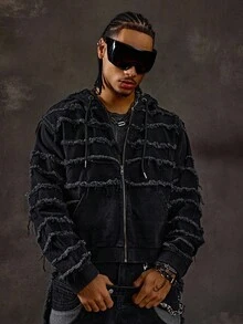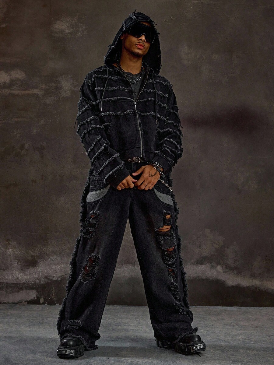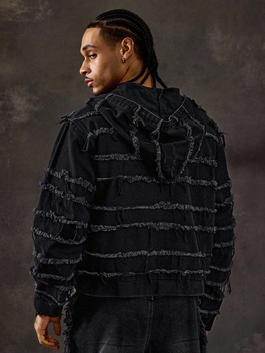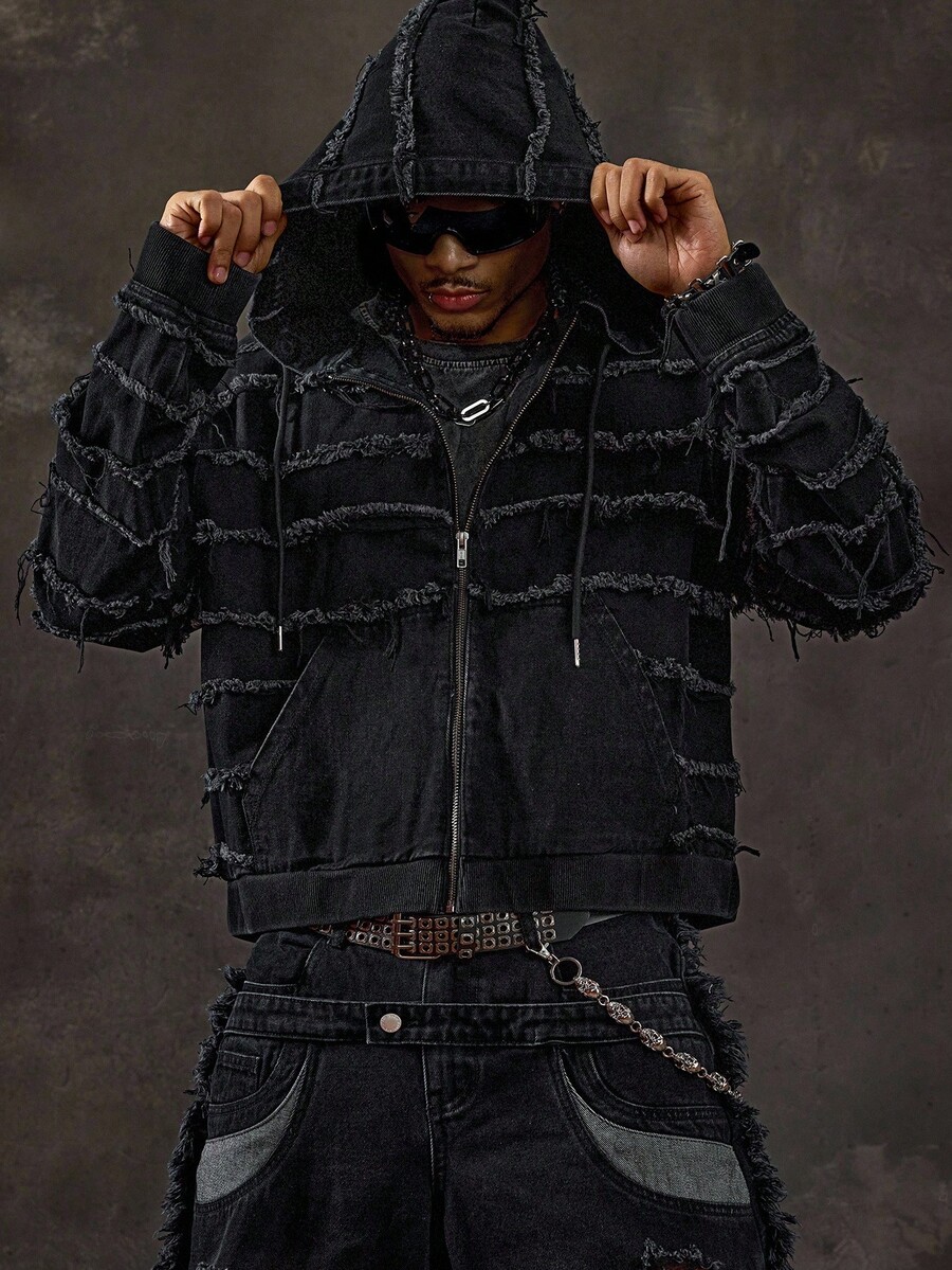 Street Life جاكيت جينز مزود بسحاب وقبعة مهترئة للرجال