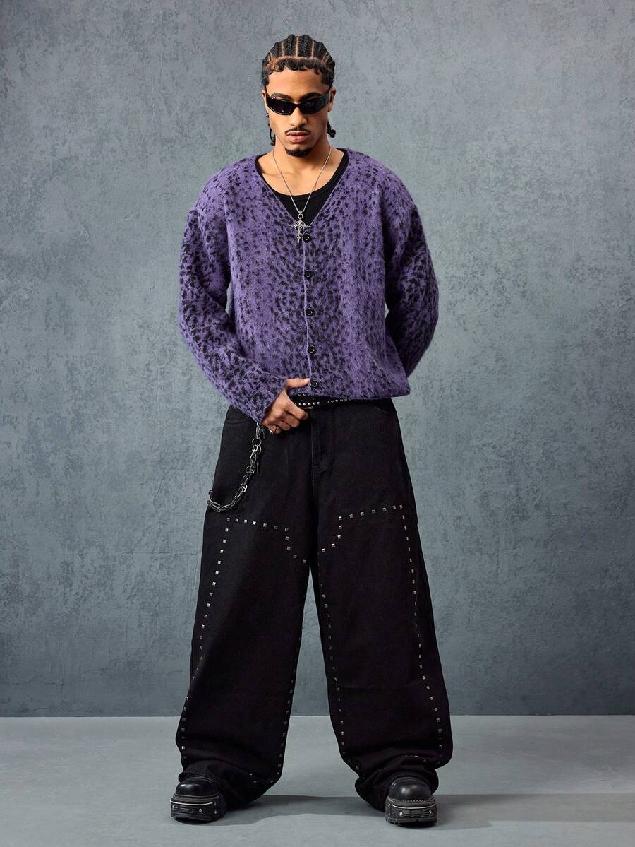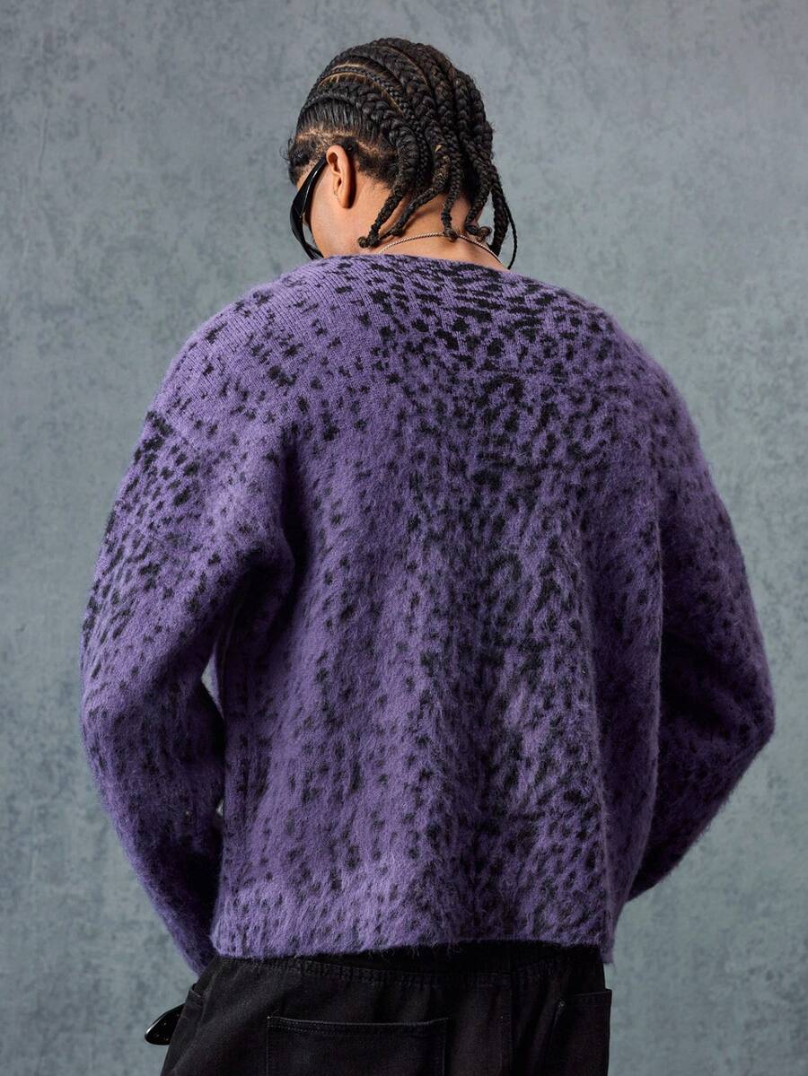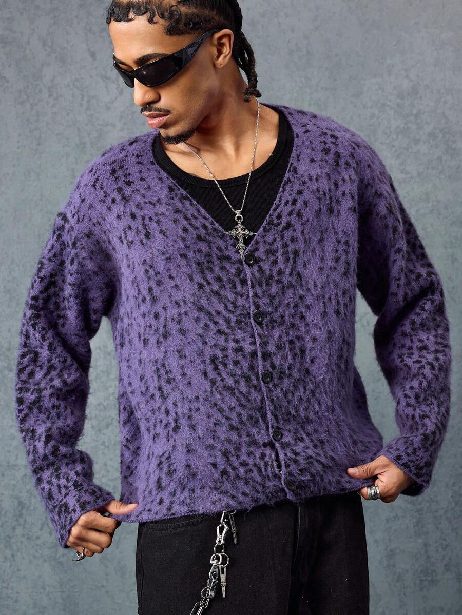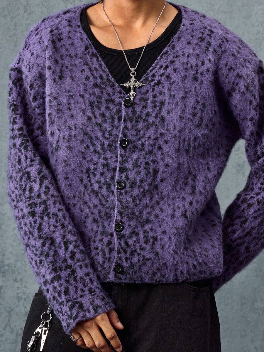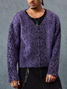 Street Life كارديجان رجالي مطرز بنمط النمر بأكمام طويلة وأزرار فردية