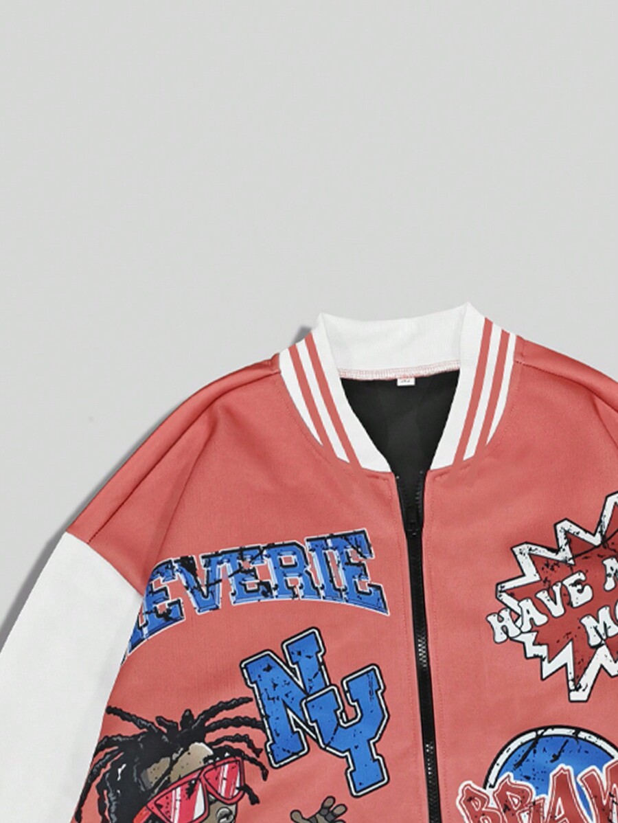 Street Life بليزر بأكمام طويلة للرجال بطباعة أحرف وشخصيات كرتونية، بطراز الشارع، للخريف