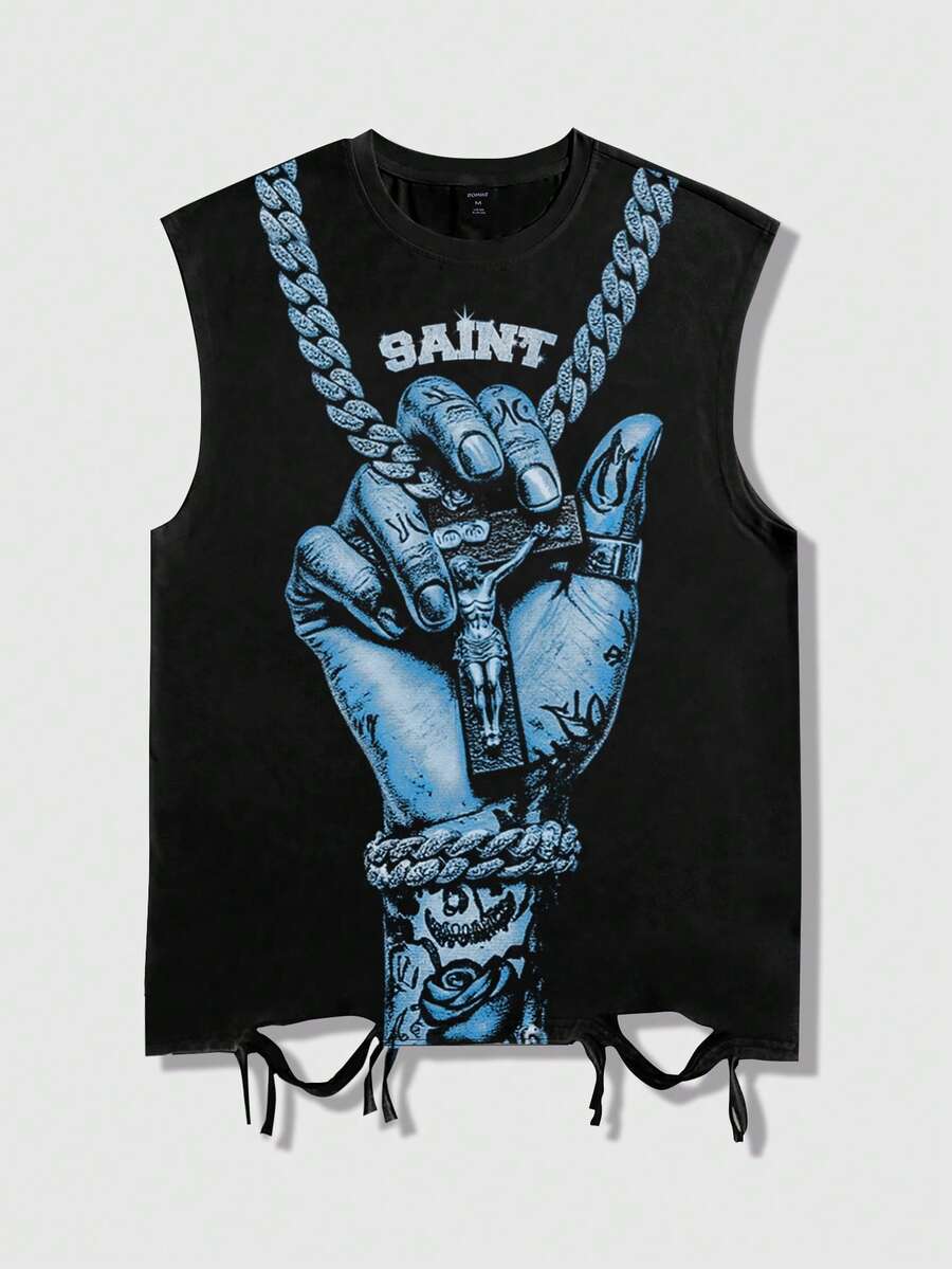 Street Life ملابس علوية كاجوال متعدد الاستخدامات للارتداء اليومي مع طباعة حرف وبصمة اليد للرجال