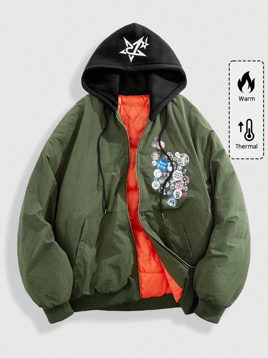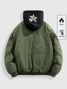 Street Life معطف رجالي مطبوع عليه حرف مع سحاب أمامي وسير خصر قابل للسحب، شتوي