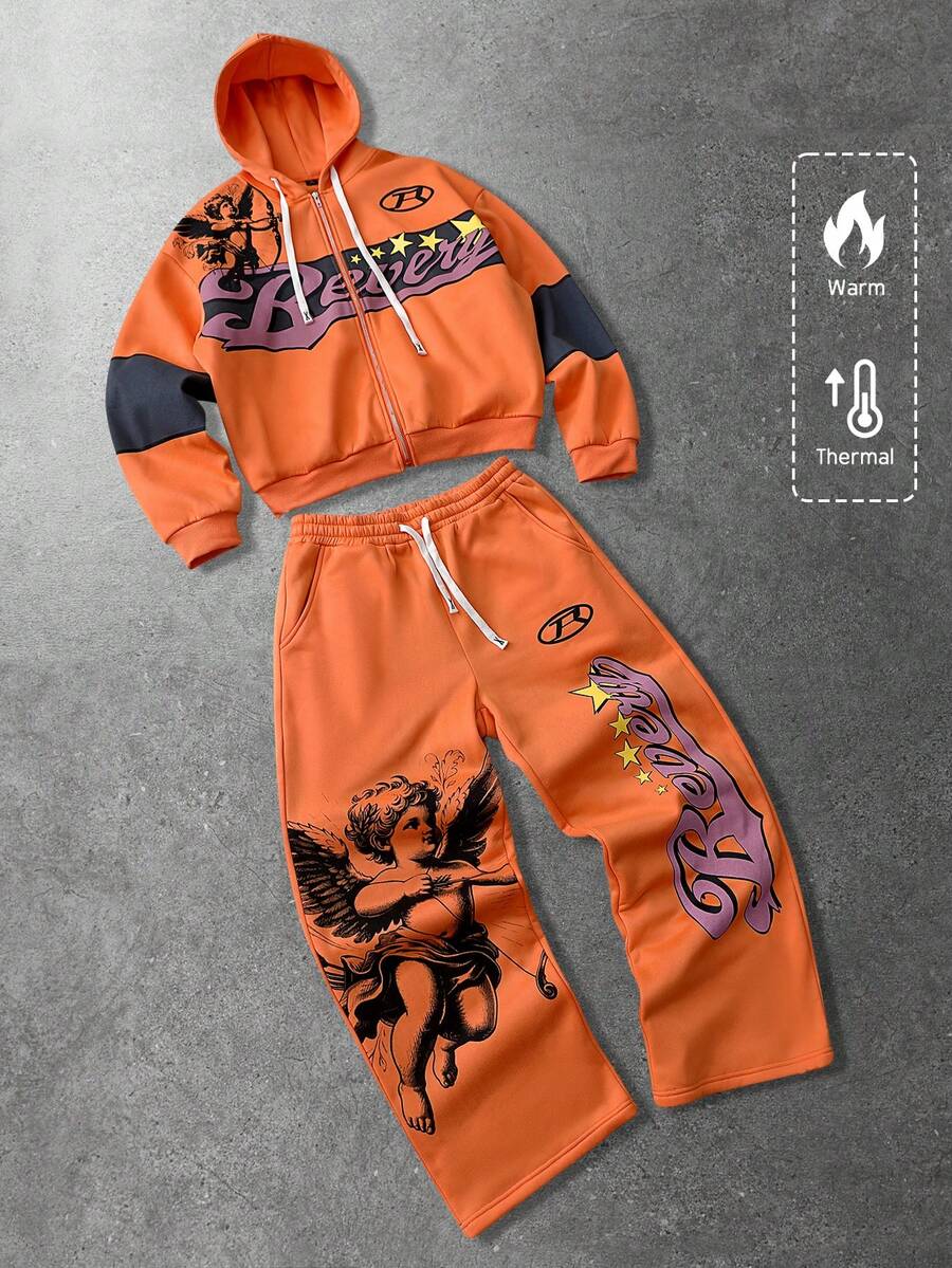 Street Life بدلة رجالية تتكون من هودي مطبوع عليه حرف مع سحاب وبنطلون بخصر مرن، للخريف/الشتاء