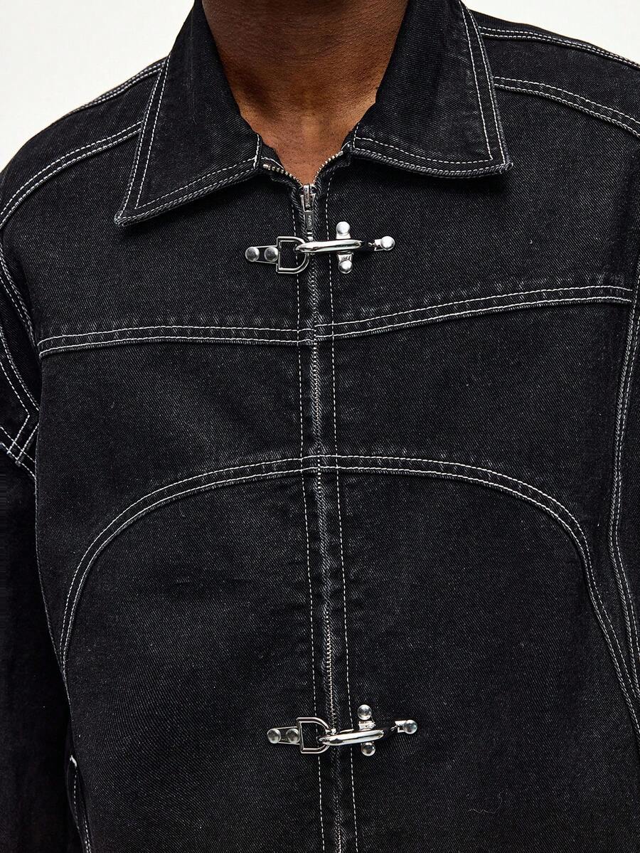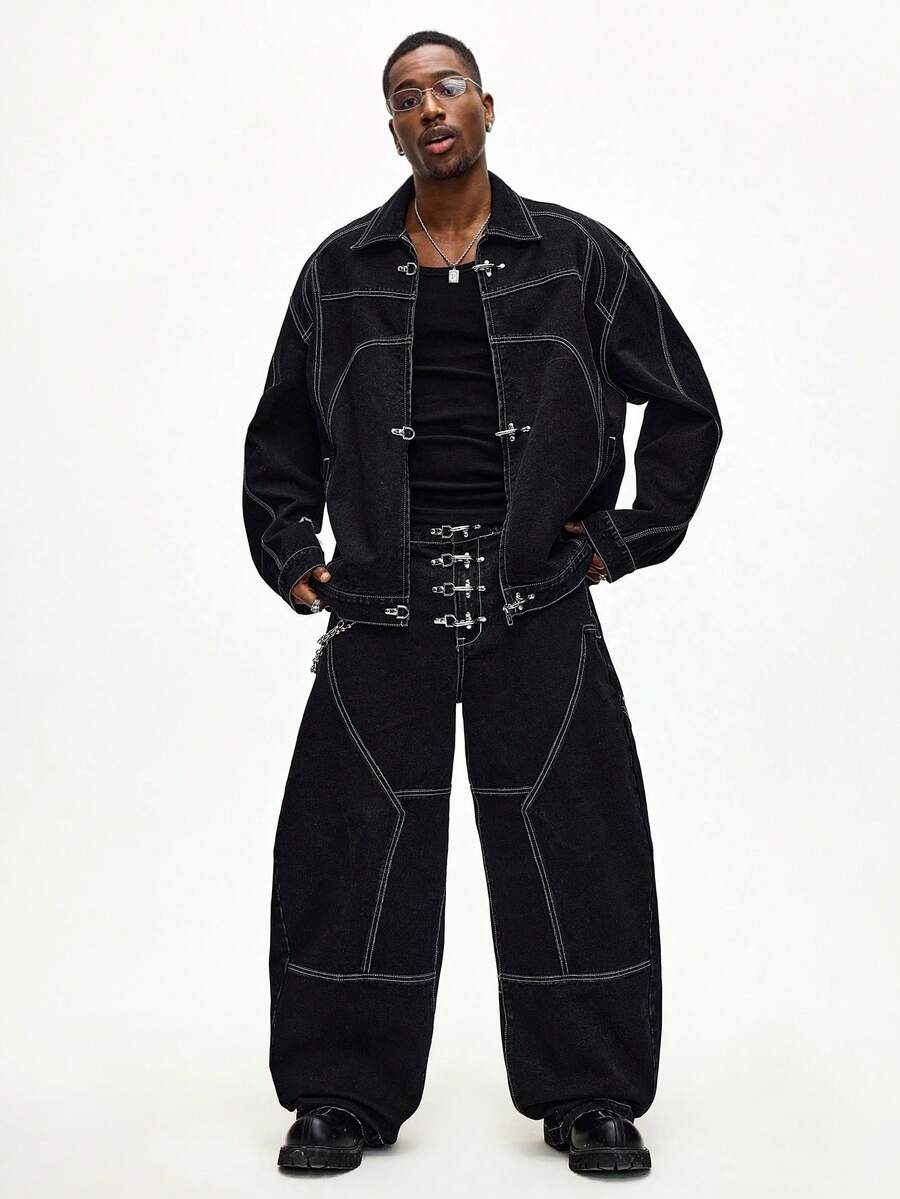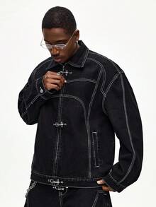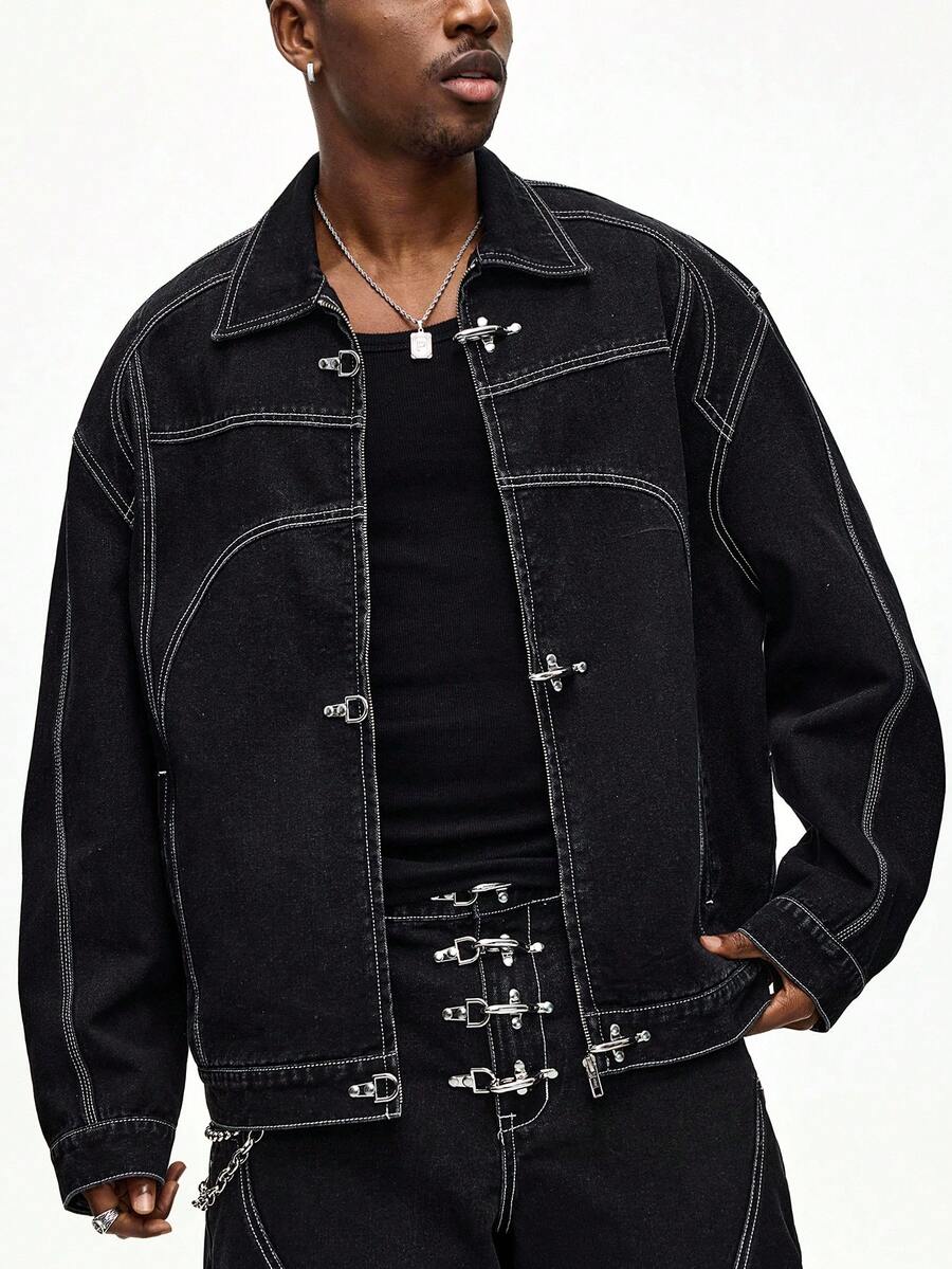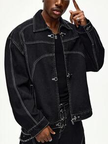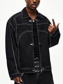 Street Life جاكيت جينز كاجوال فضفاضة بتصميم أزرار معدنية طويلة الأكمام للرجال