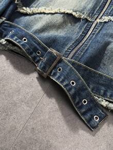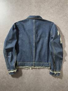 Street Life جاكيت جينز كاجوال طويل الأكمام مع سحاب أمامي مشوه