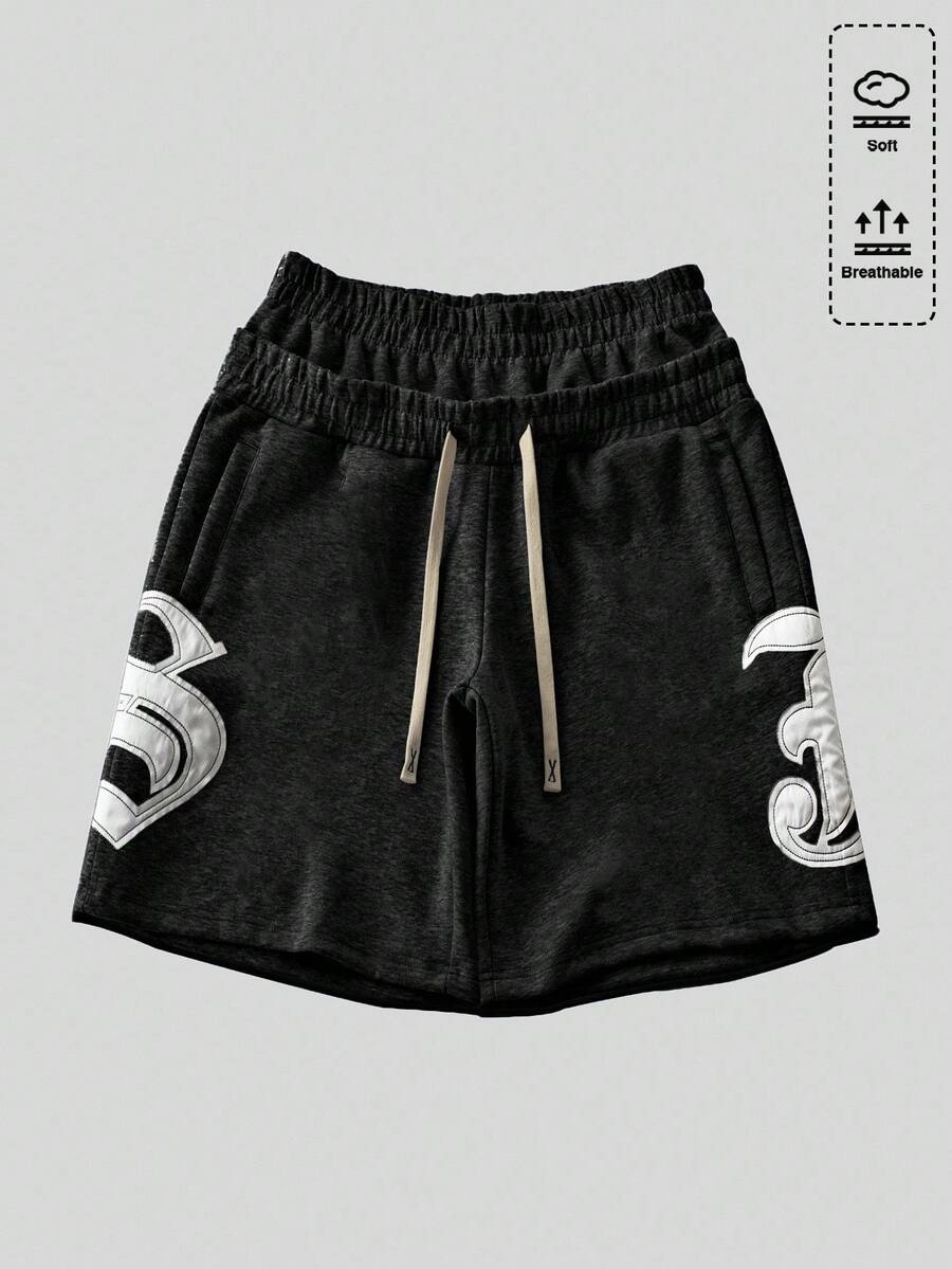 Street Life شورت رجالي فضفاض كاجوال مع جيوب وقطعة مطرزة، خصر مزدوج الطبقة