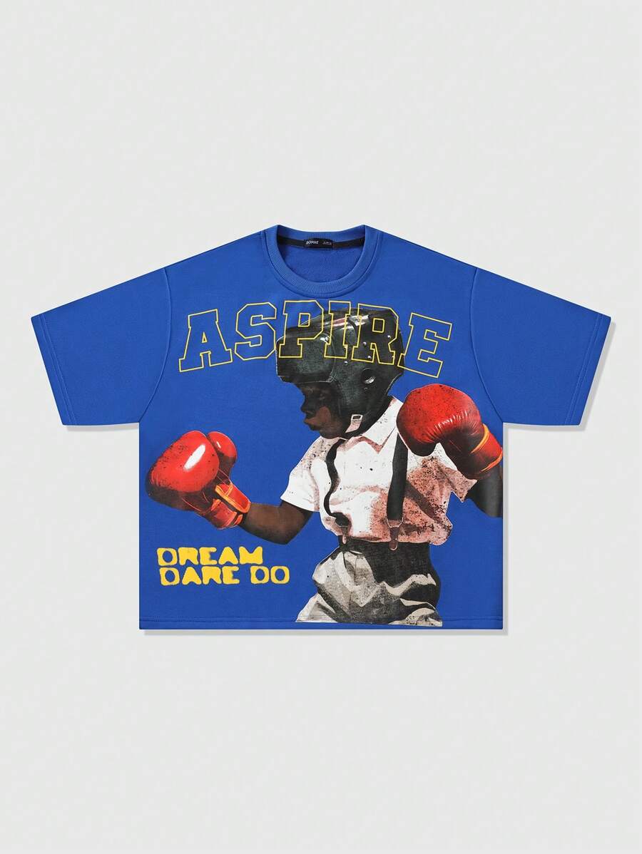 Street Life تي شيرت رجالي مطبوع بطباعة إطار الملاكمة واسع وقصير الخصر