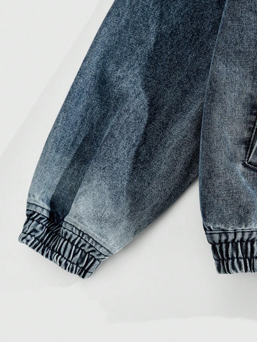 Street Life جاكيت جينز فضفاض مخصر للرجال ، ملابس شارع