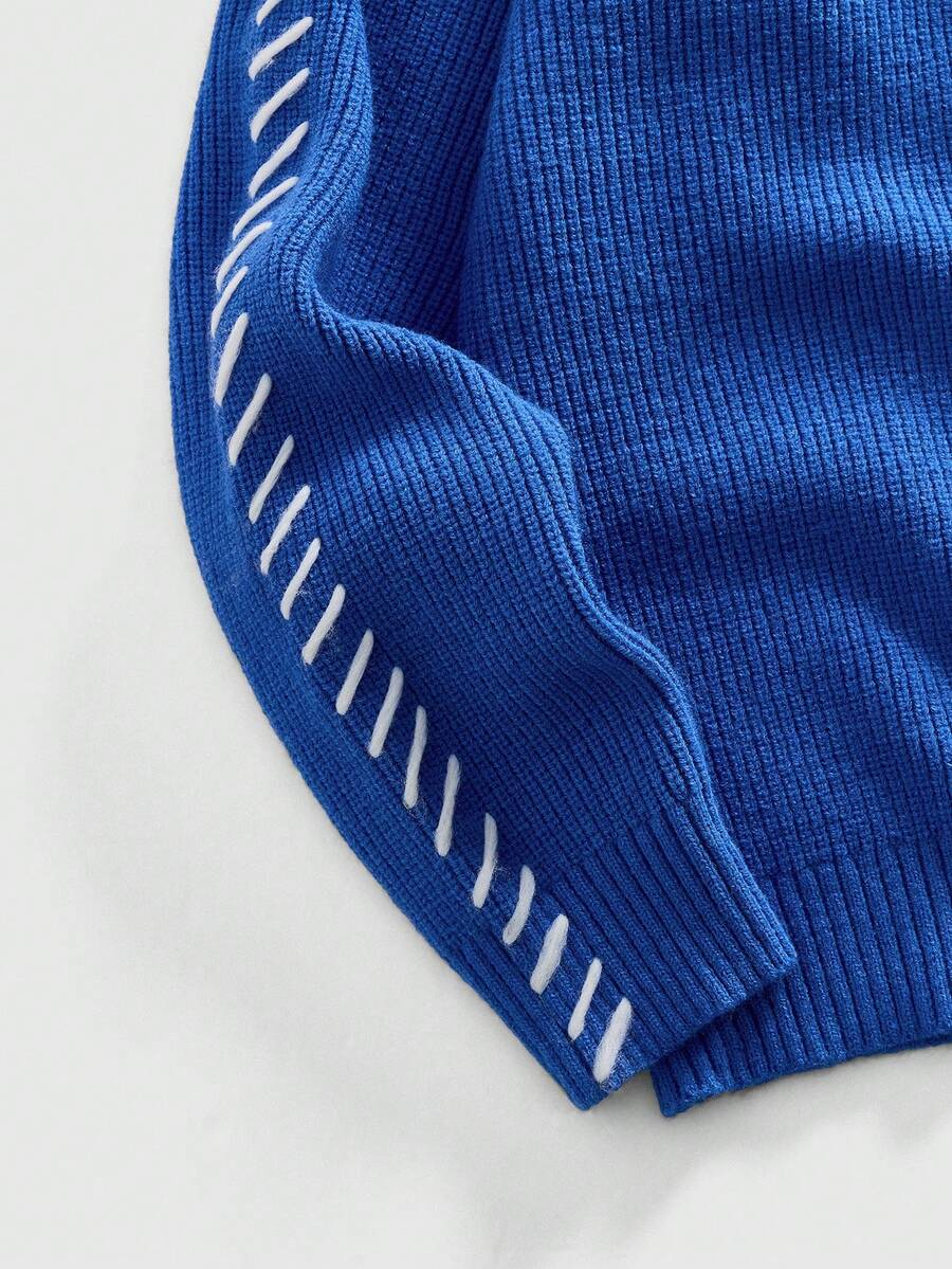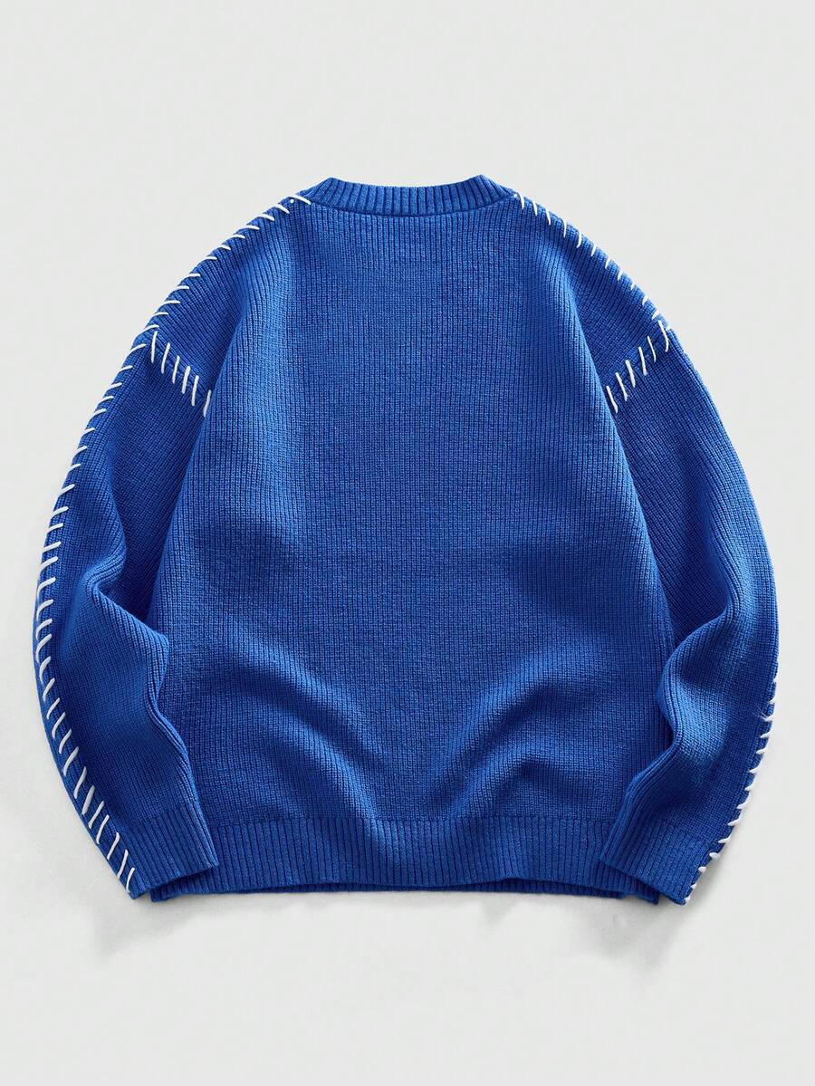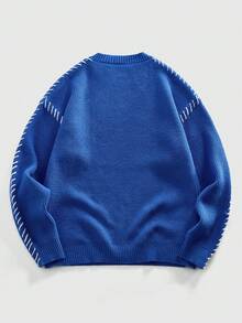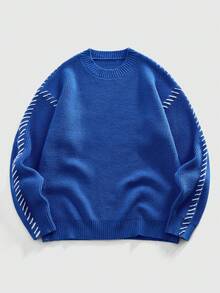 Street Life كنزة صوفية كاجوال بياقة طاقم وأكمام طويلة بفضفاضة للرجال، خريف/شتاء
