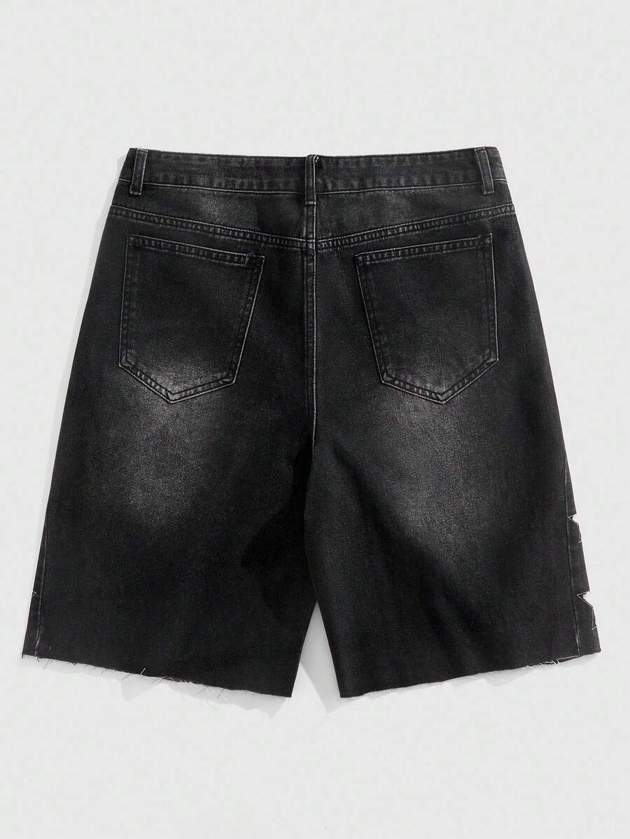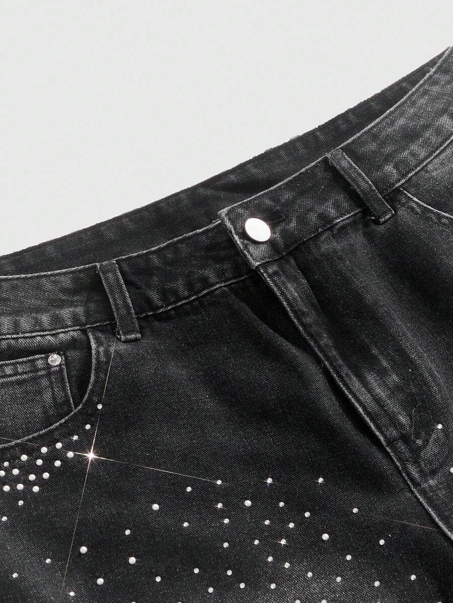 Street Life شورت جينز أريحي بتطريز ماسي على شكل نجمة خماسية للرجال