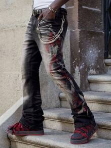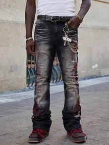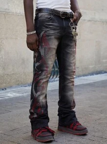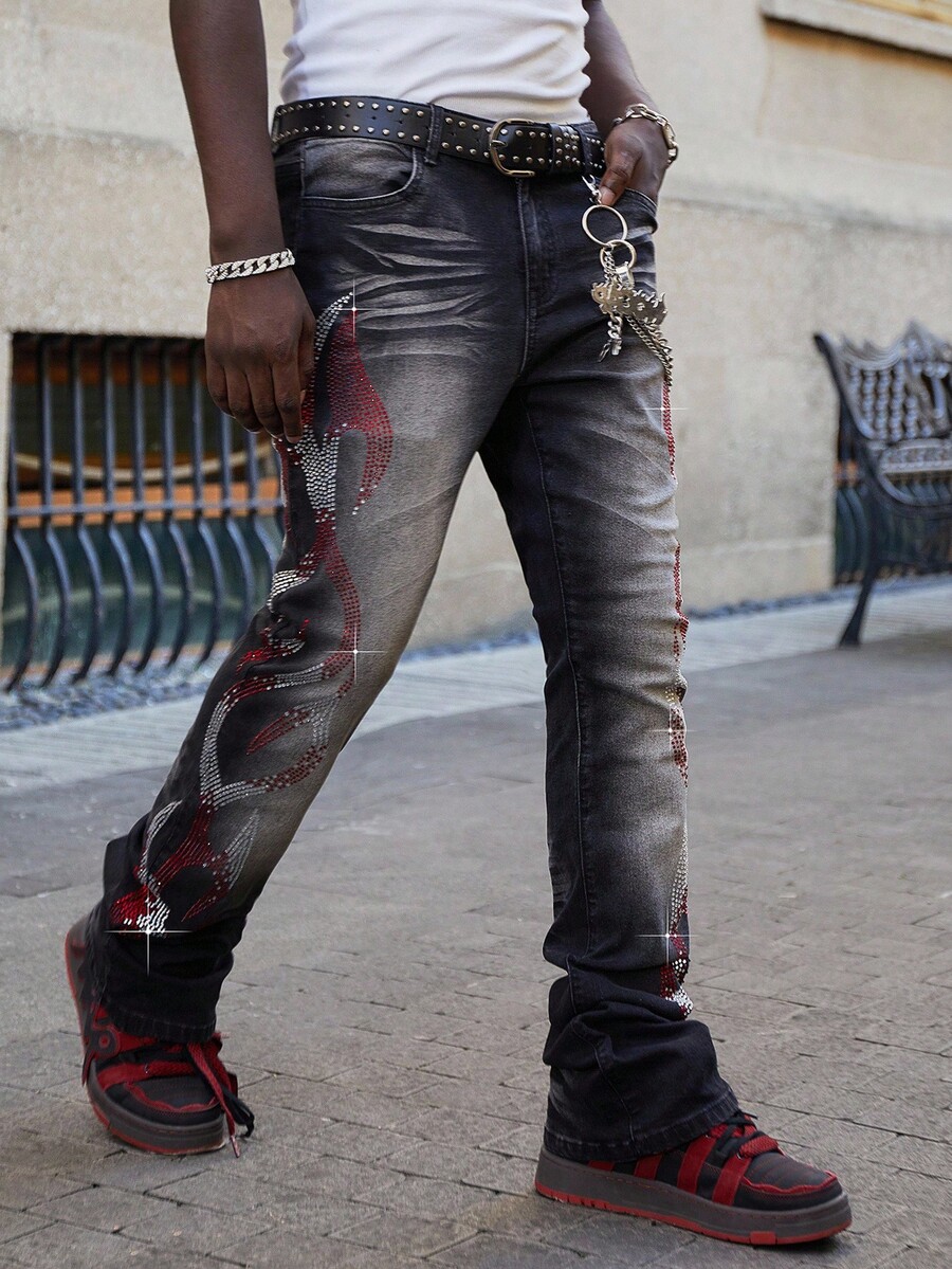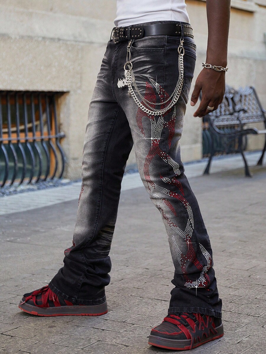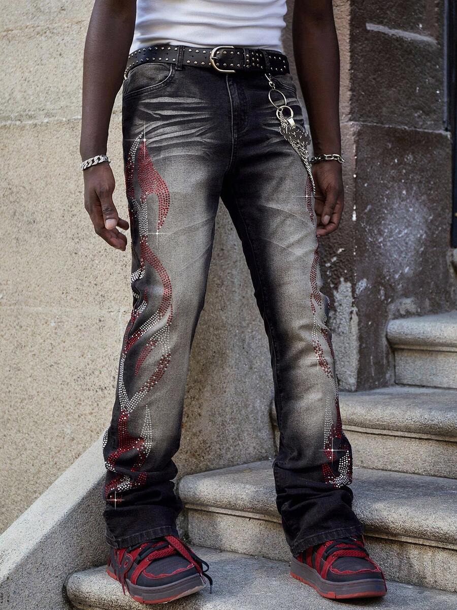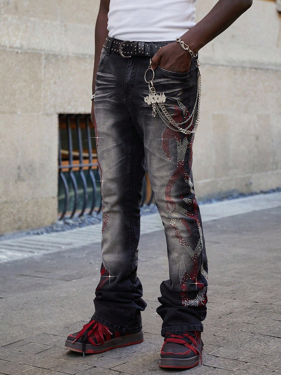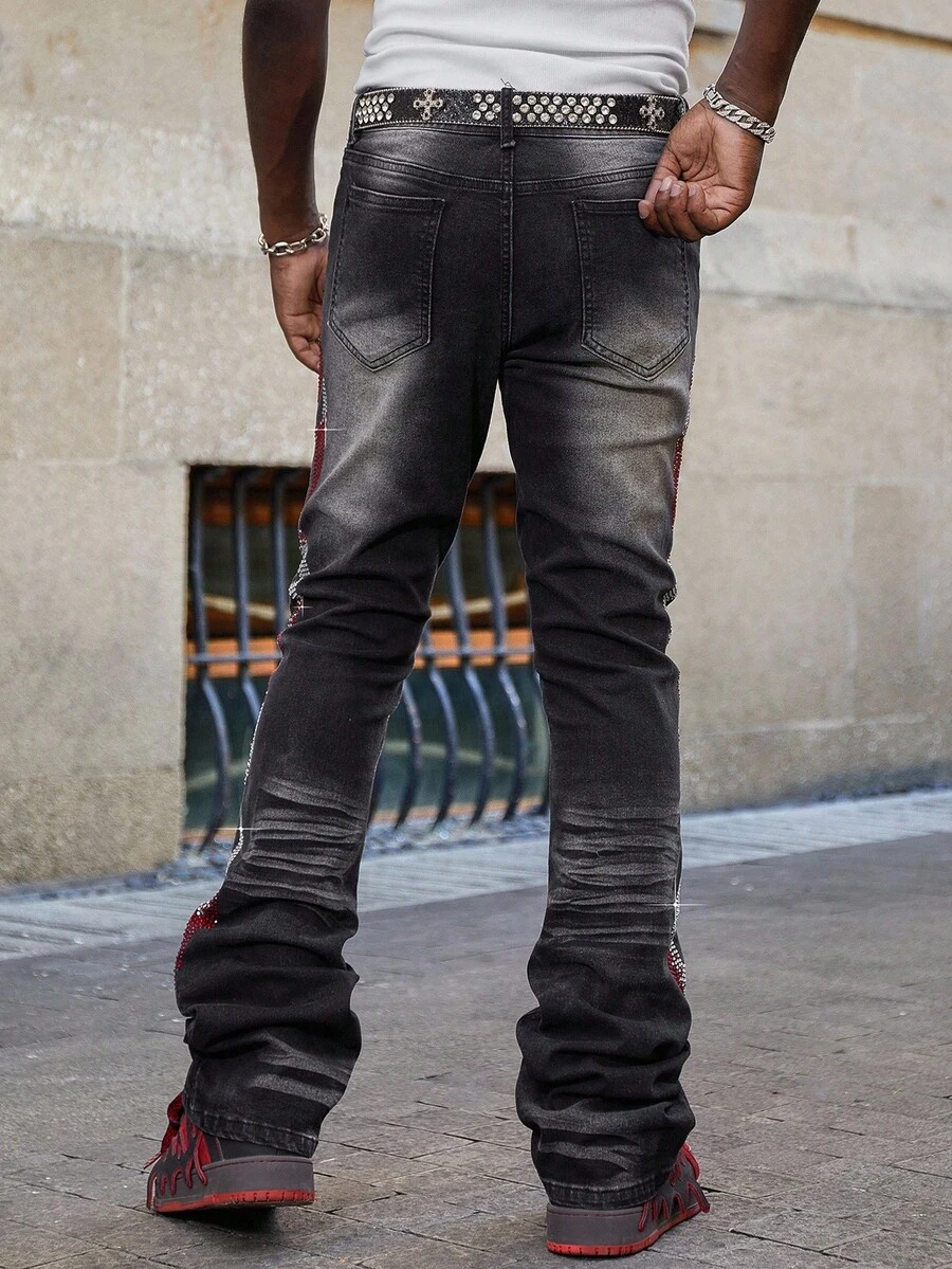 Street Life بنطلون جينز رجالي منخفض الخصر مزين بالراين ستون بتصميم عصري