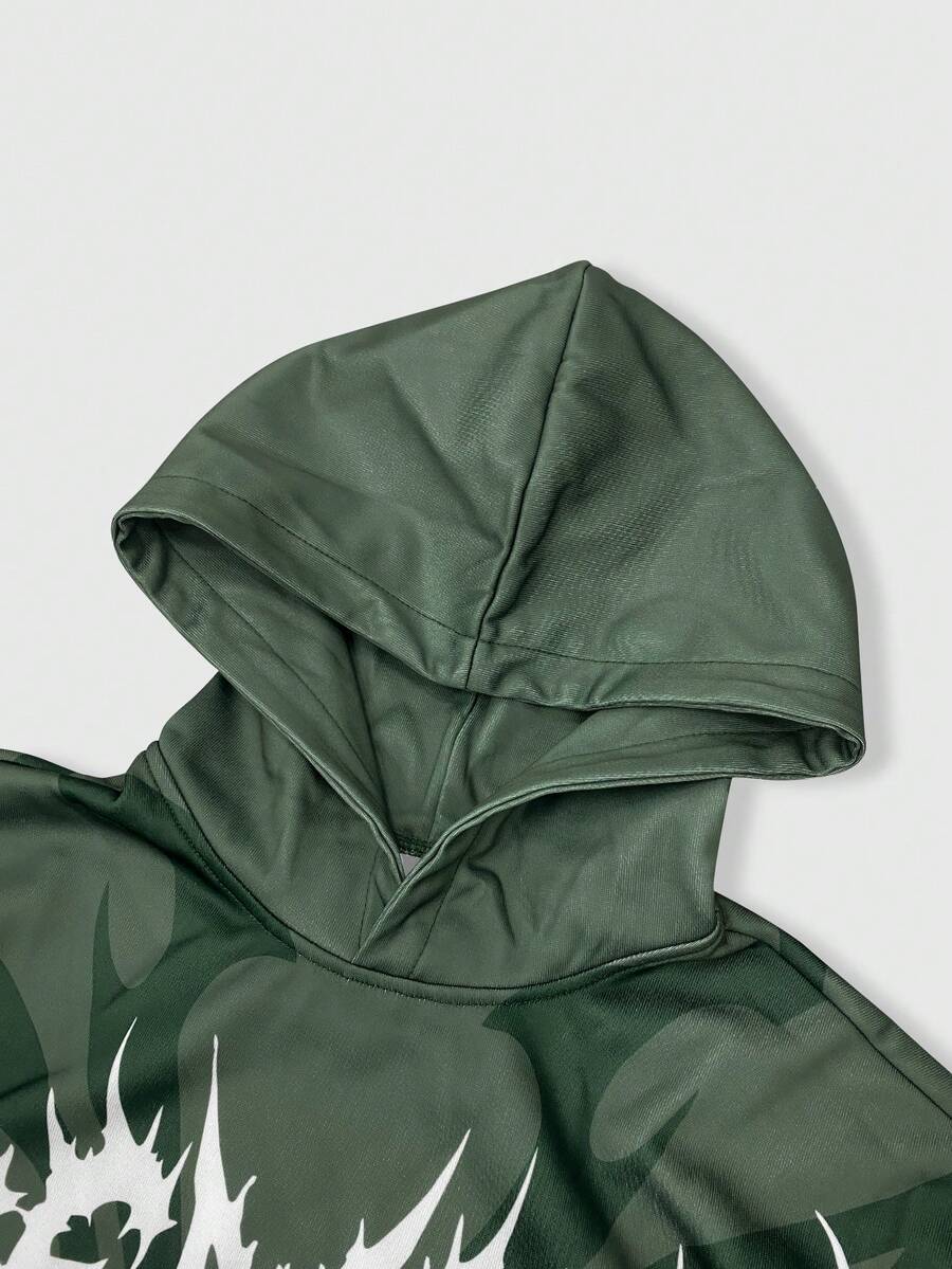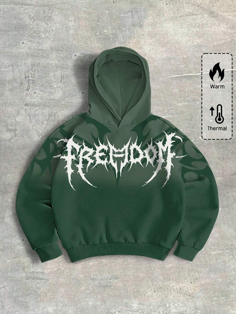 Street Life هودي بأكمام طويلة مطبوع بتصميم بسيط للرجال