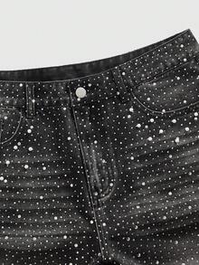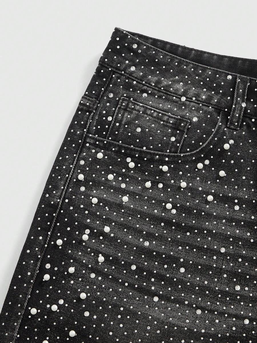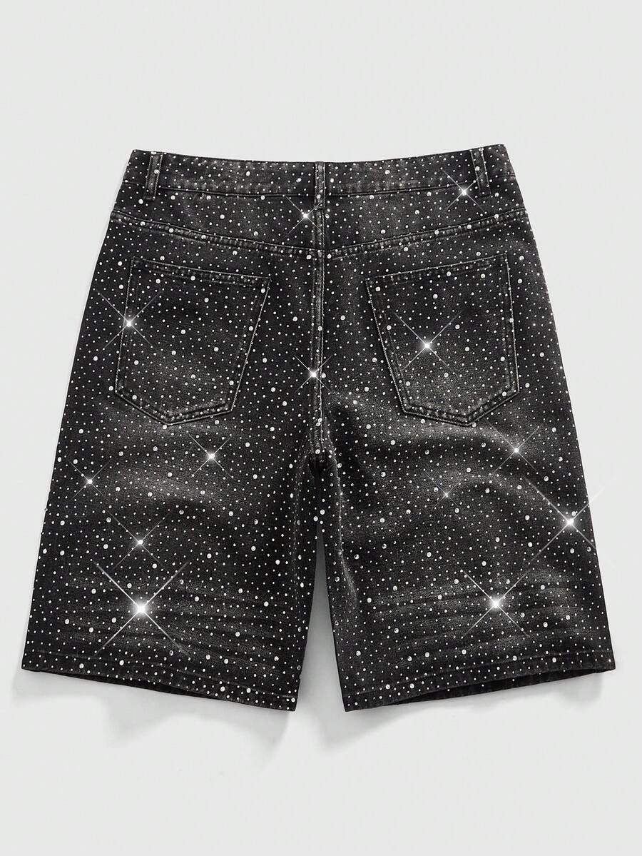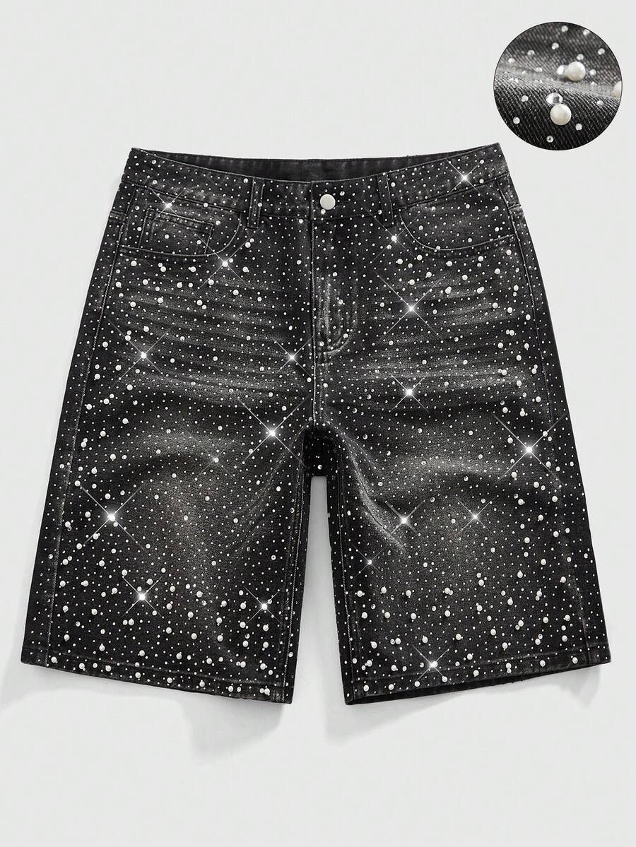 Street Life شورتات جينز فضفاضة مزينة باللؤلؤ والماس للرجال