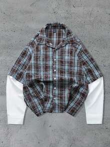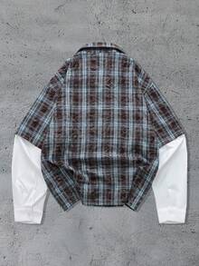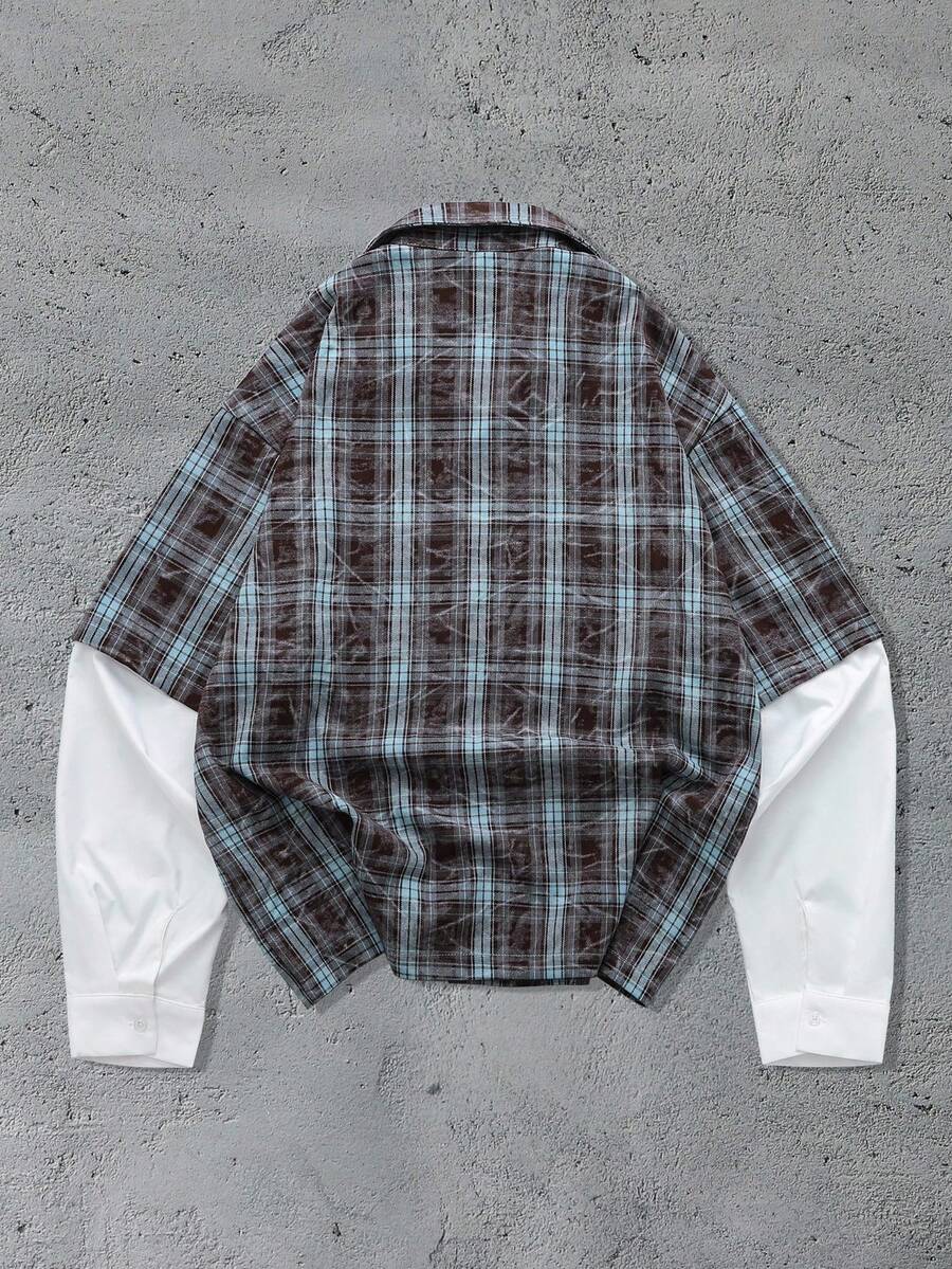 Street Life قميص رجالي بتصميم مربعات ملونة 2 في 1 بأكمام طويلة، موسم الخريف