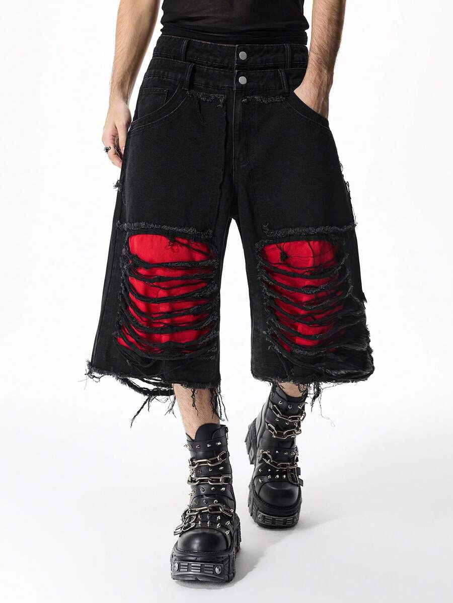Street Life شورتات جينز كاجوال للرجال مصممة بجيب وحافة مبهتة ومشذبة بطريقة عصرية