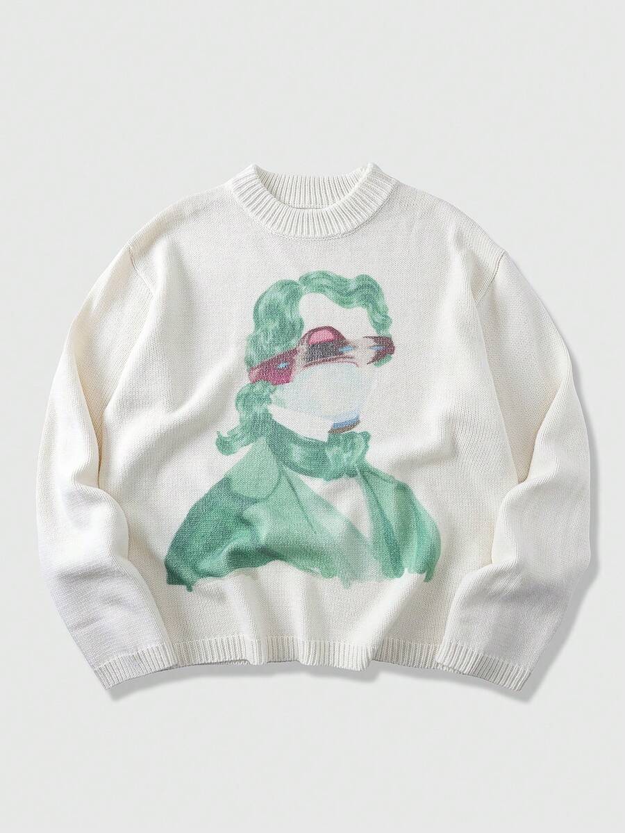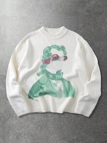 Street Life كنزة صوفية رجالية كاجوال بياقة طاقم وأكمام طويلة بطبعة صورة شخصية متعددة الاستخدامات