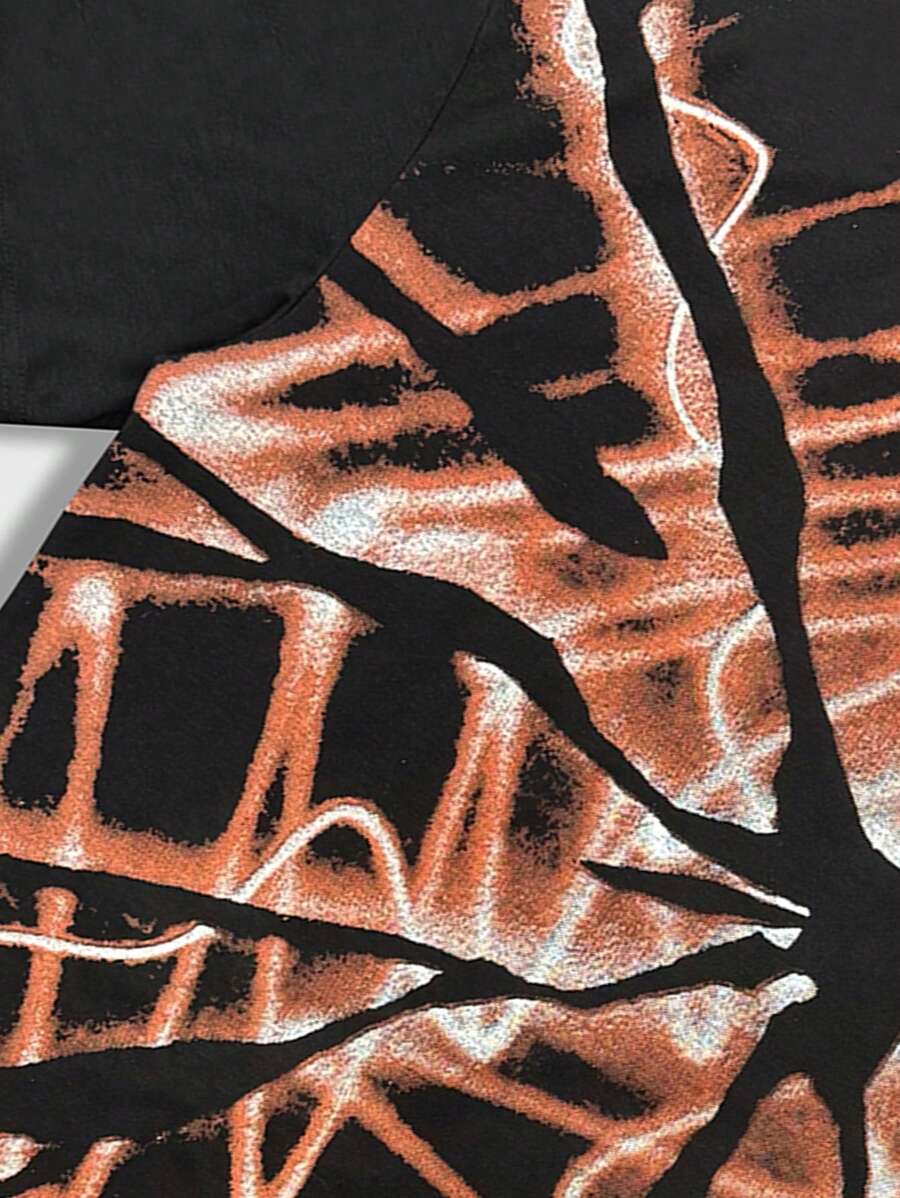 Street Life تي شيرت قصيرة مطبوعة بياقة عادية للرجال، صيفي