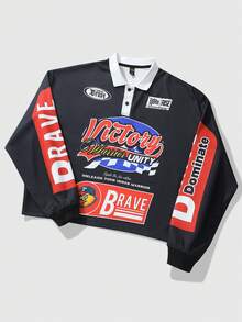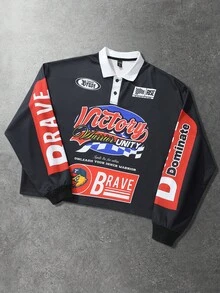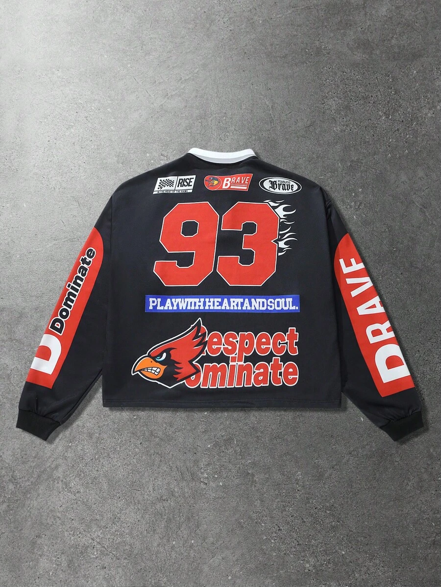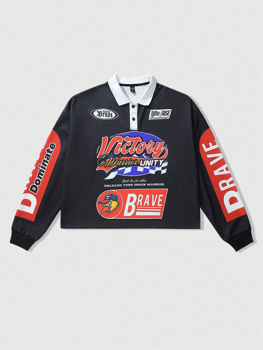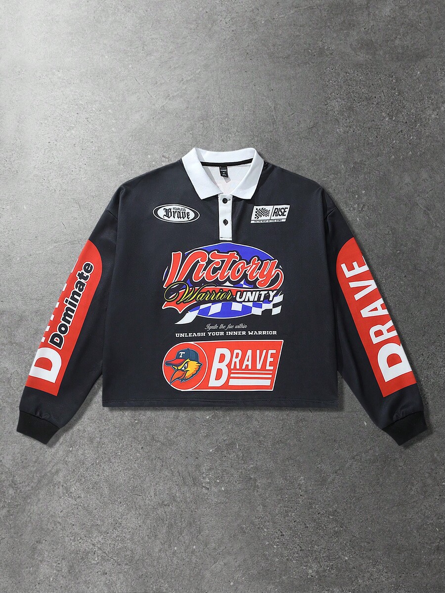 Street Life قميص بولو رياضي بأكمام طويلة مطبوع للرجال