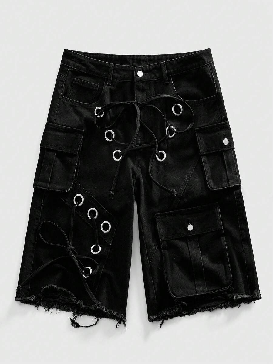 Street Life شورتات كارجو رجالية بخصر منخفض فضفاضة مهترئة بطراز بانك وشارع