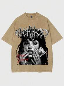 Street Life تي شيرت مطبوع بصورة رجعية مغسول مشوه، صيفي، مدرسي