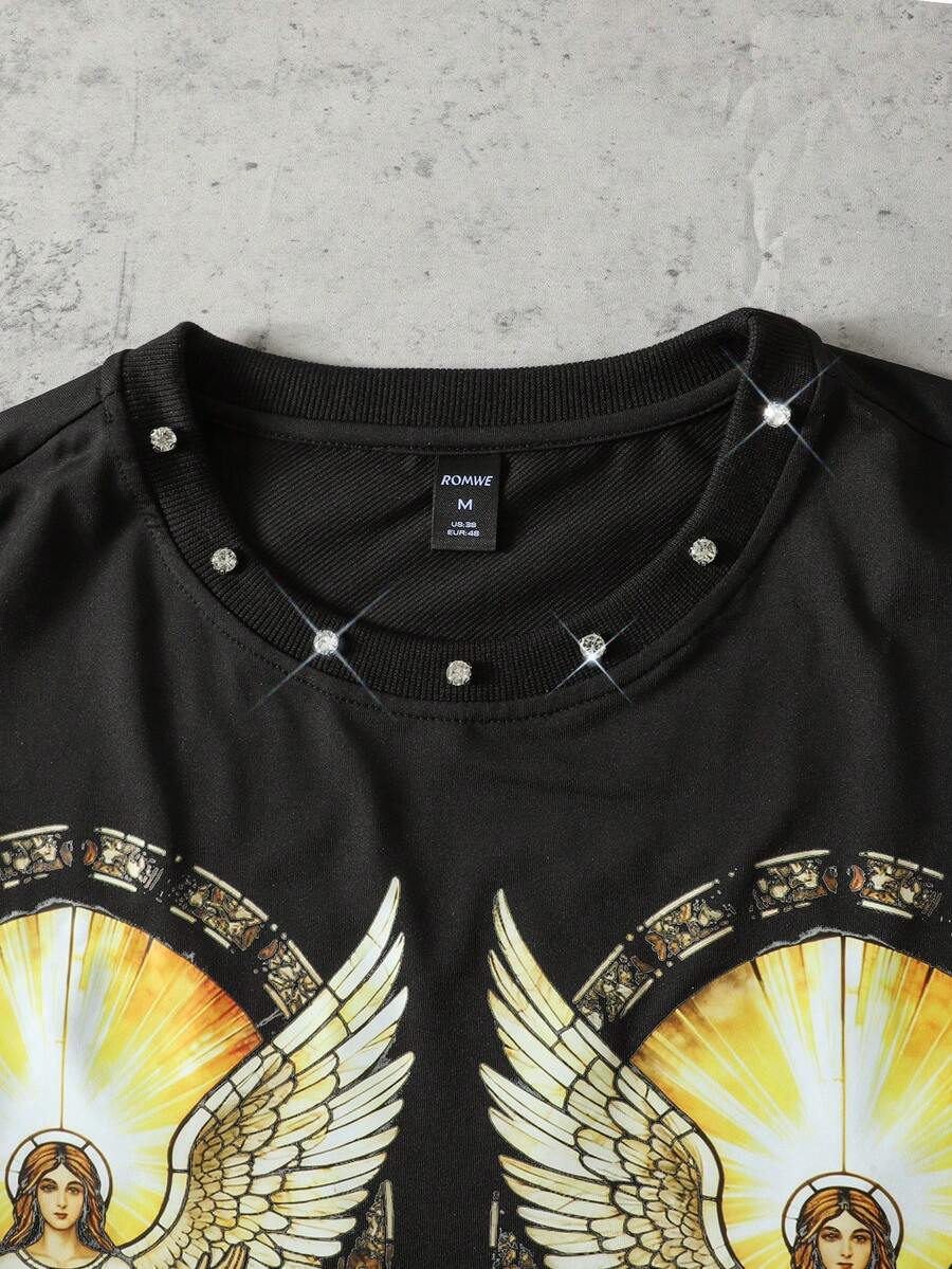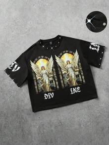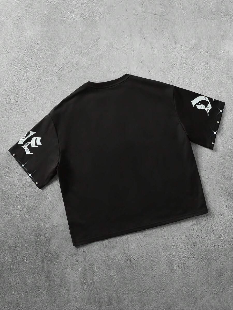 Street Life قميص قصير فضفاض مطبوع بالراين للرجال