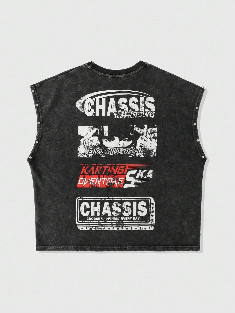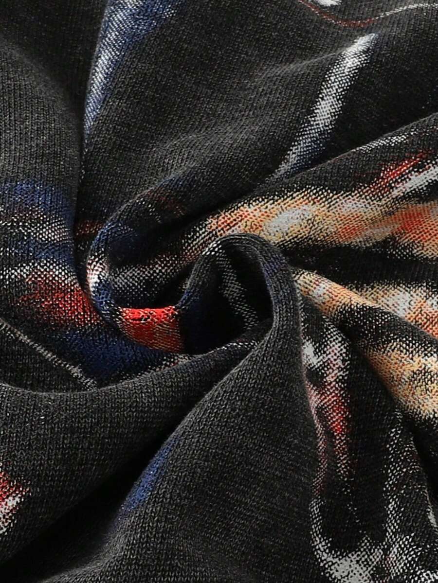 Street Life خزان علوي طباعة مرسوم مغسول ذو نمط قصير فضفاض مزدان بالدبابيس للرجال
