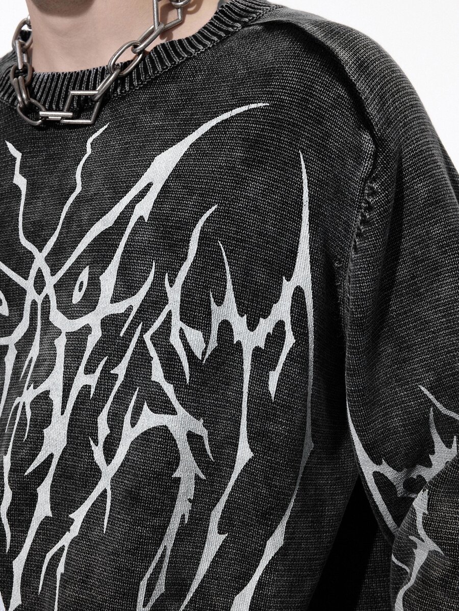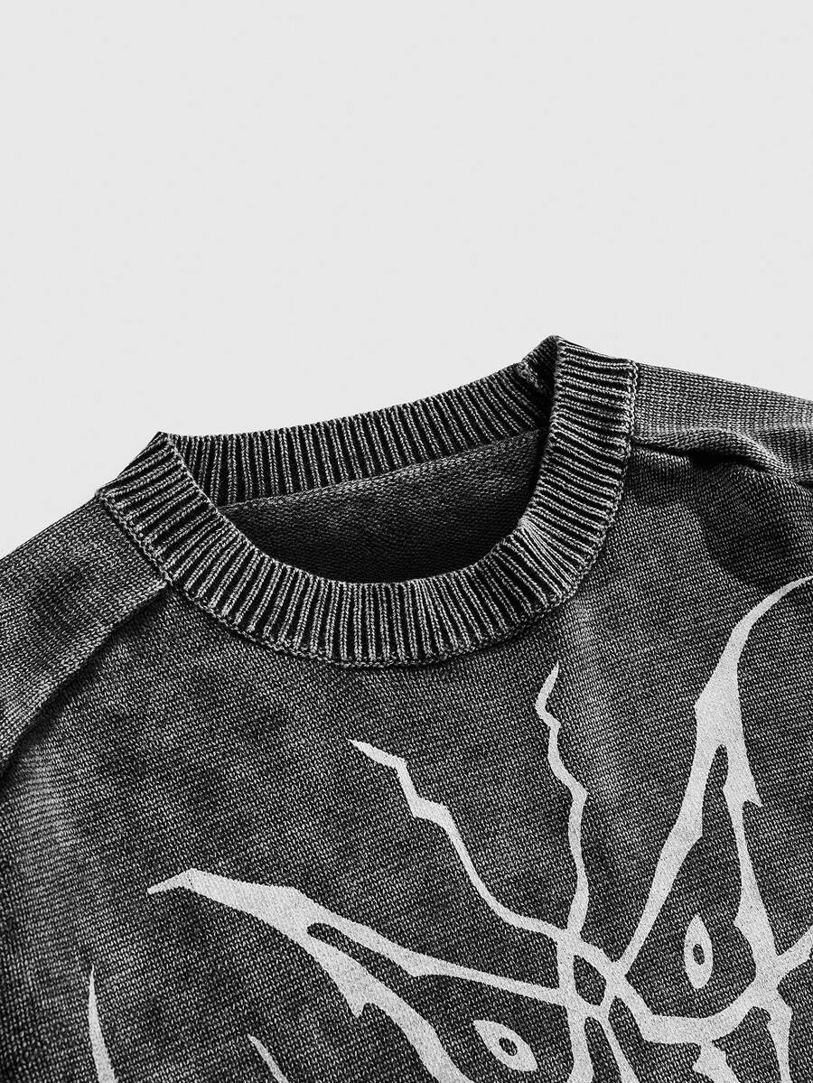 Goth كنزة صوفية صوفية للرجال بياقة مستديرة وخطوط متناظرة مُحاكة