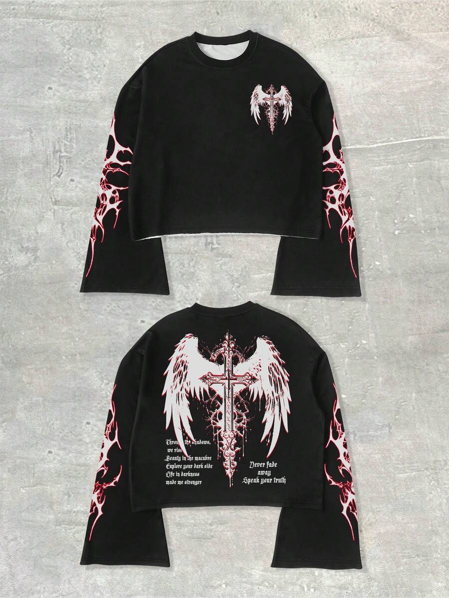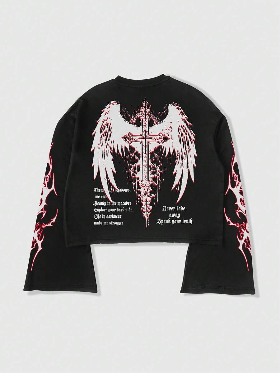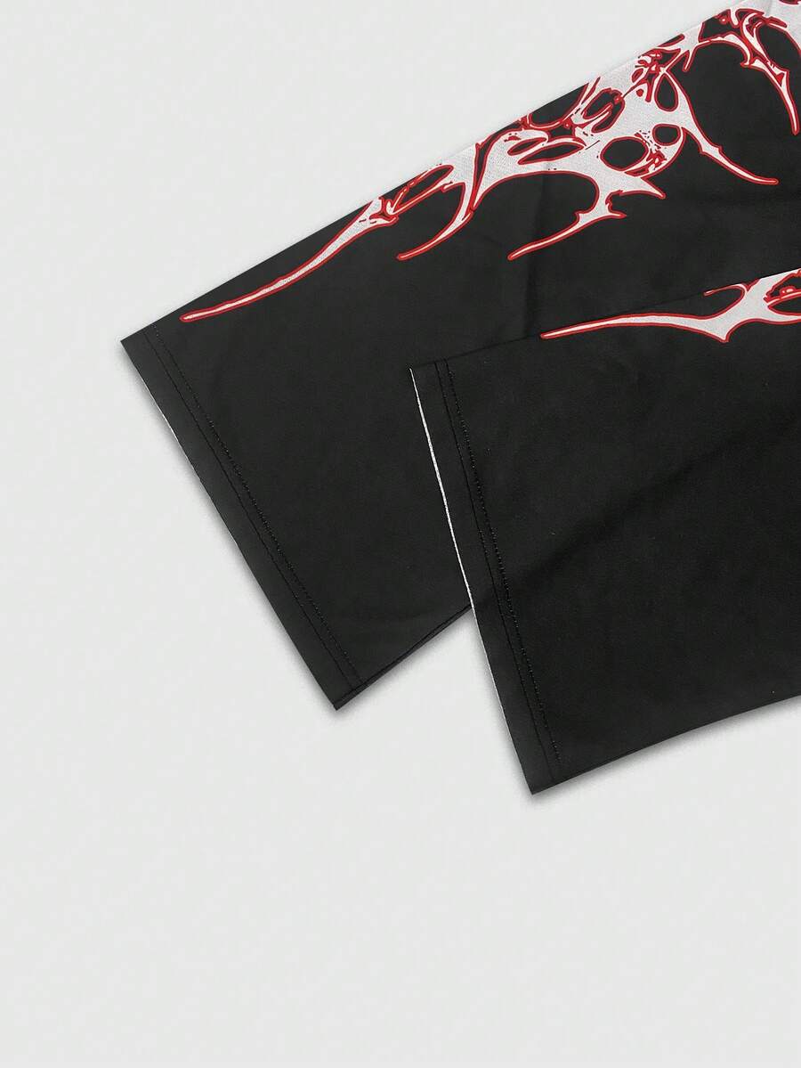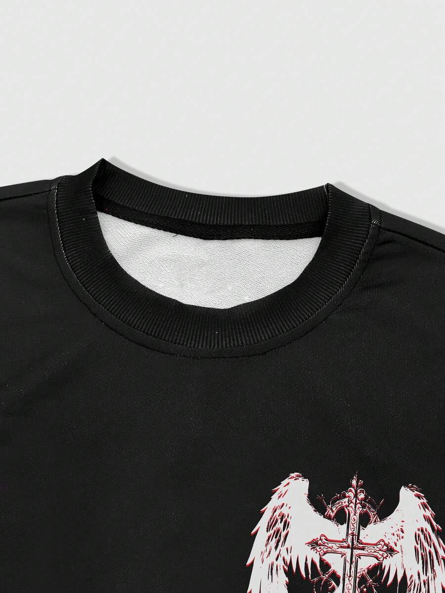 Street Life قميص T قصير بياقة مستديرة وأكمام متسعة، بطبعة صليب إبداعية وأنيقة للشارع