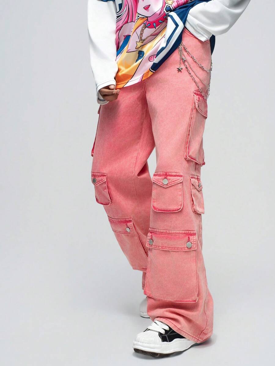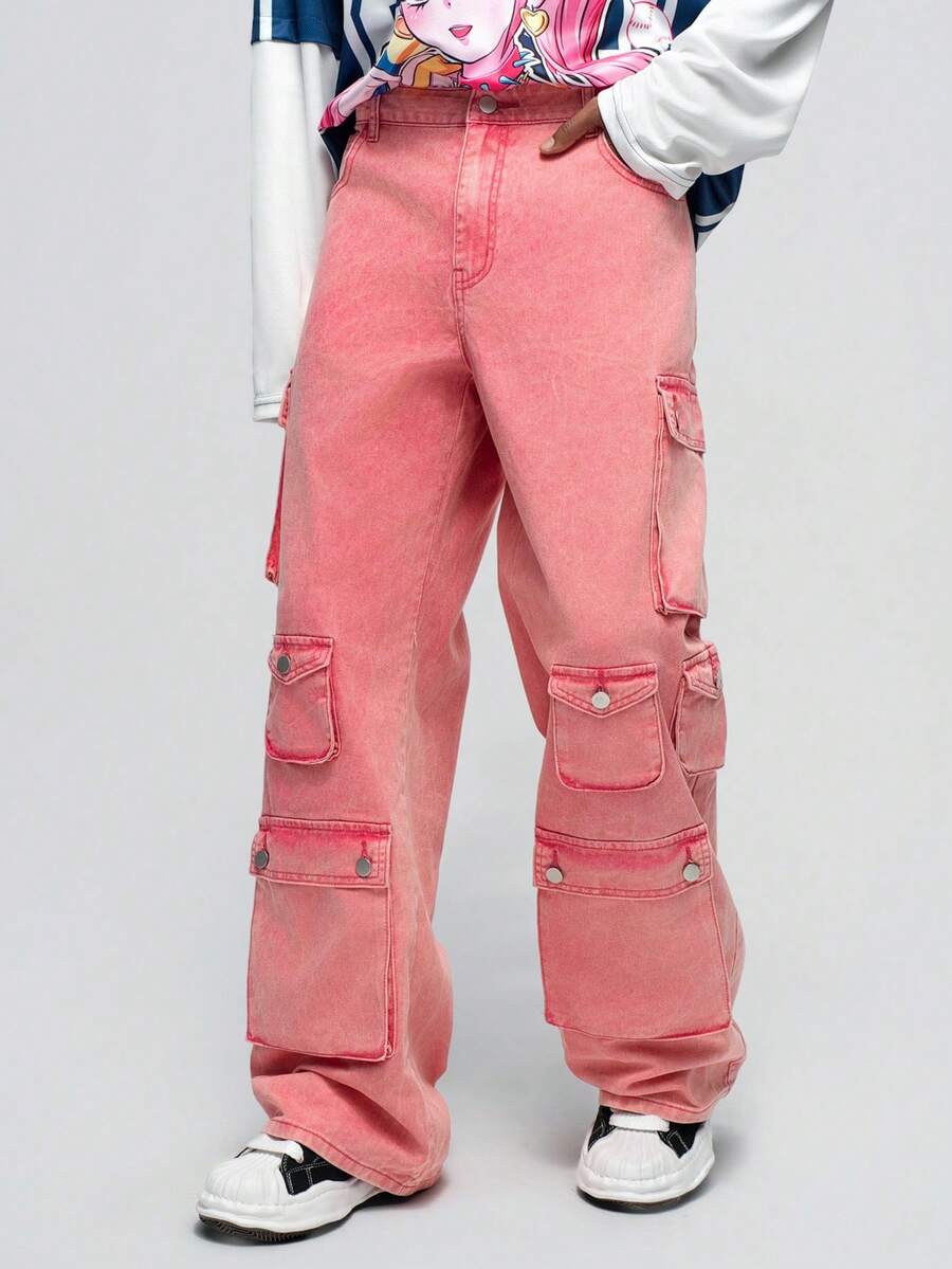 Street Life سروال جينز كاجوال من للرجال، سهل ذو أزرار أمامية وجيوب متعددة
