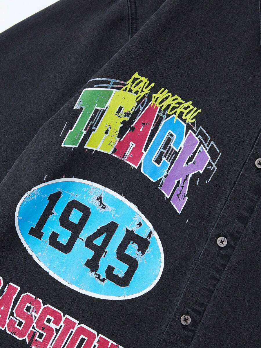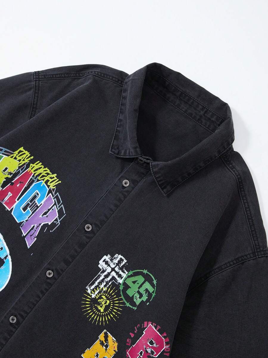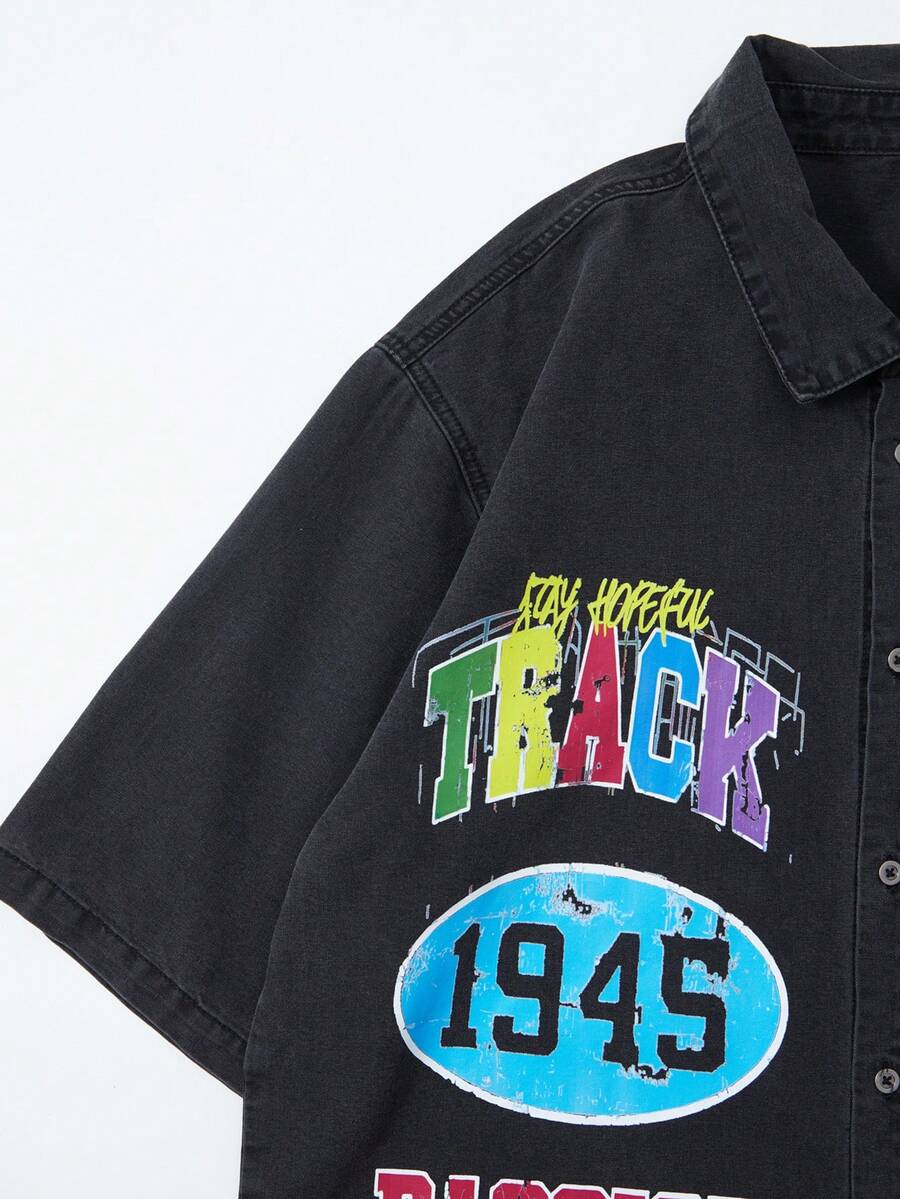 Street Life قميص جينز كاجوال قصير الأكمام بنمط حرفي وكتف منخفض أحادي الصدر للرجال