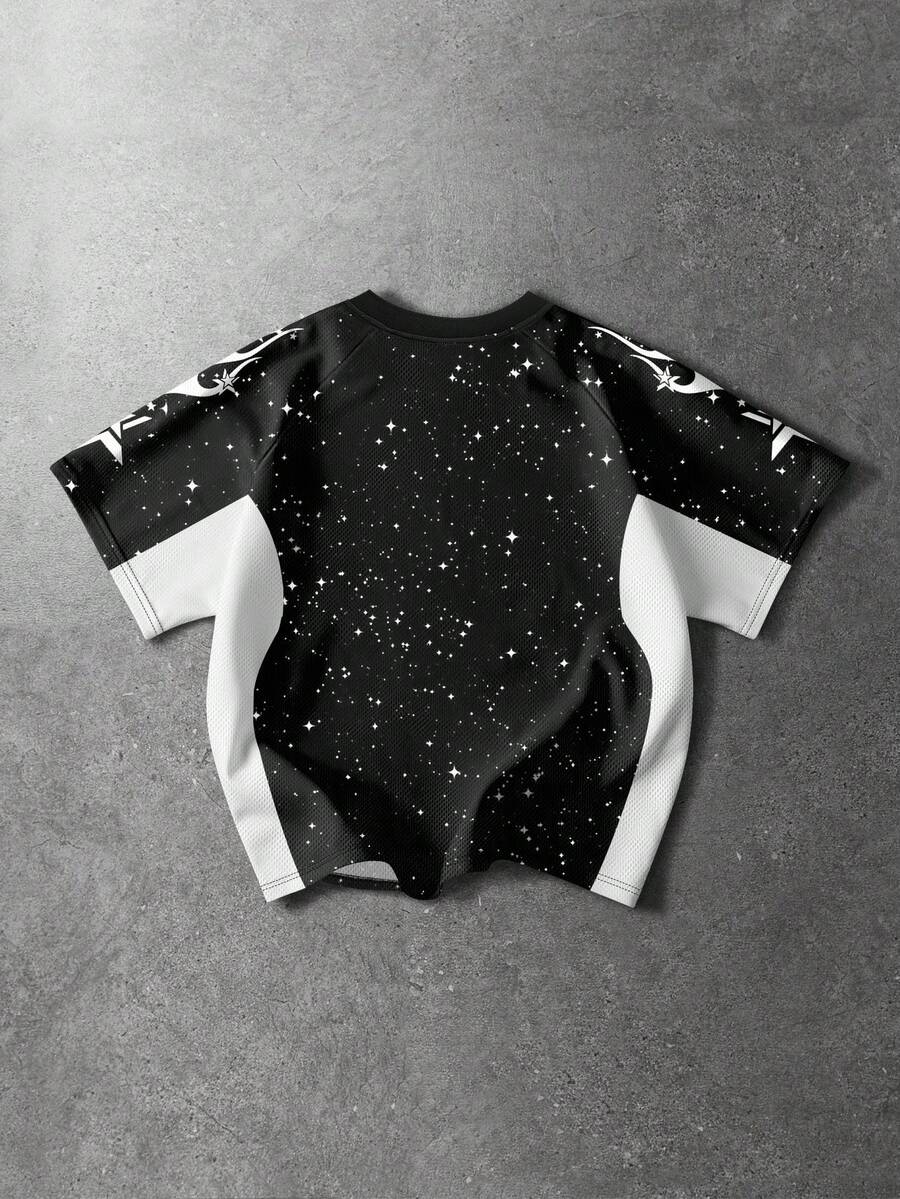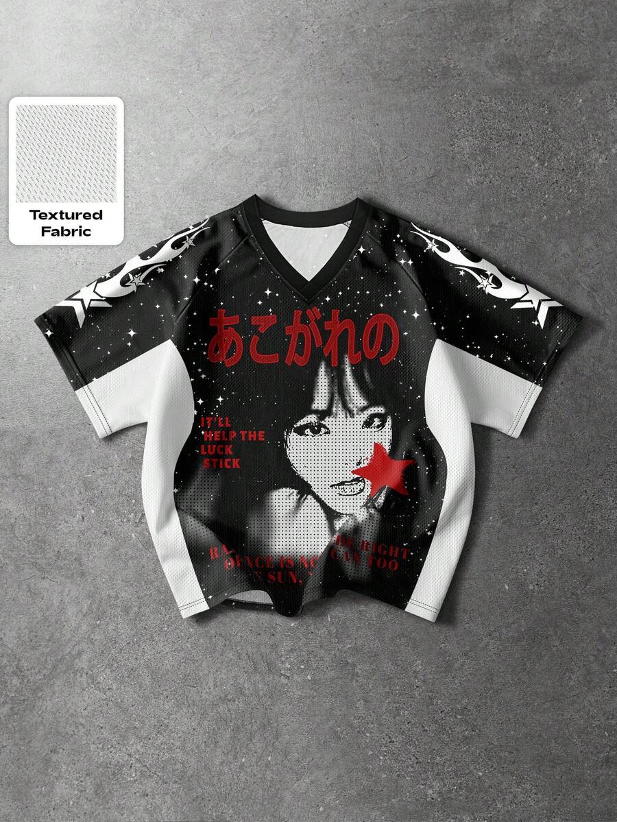 Street Life قميص كاجوال بياقة على شكل V وأكمام قصيرة مطبوع عليه شعارات وأشكال للرجال
