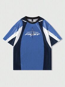 Street Life تي شيرت تي بأكمام قصيرة للرجال مع شعار وطباعة كرة القدم، مناسب للارتداء اليومي في الربيع والصيف